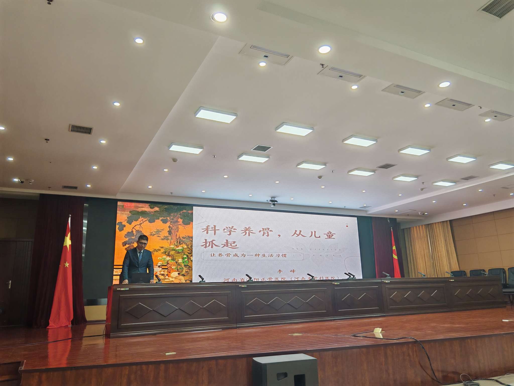 我院受邀在河南省卫健委妇幼健康沙龙活动中进行平乐郭氏正骨养骨法现场推广和传播。活动中,我院骨关节病一科主诊医师李峰博士以《科学养骨,从儿童抓起》为主题,为大家讲解骨骼养护从娃娃抓起的重要性,结合儿童生长发育特点,从中医角度教大家如何顺应四时、合理膳食、起居有常、科学运动等养骨法,并进行养骨操现场示教和互动学习。