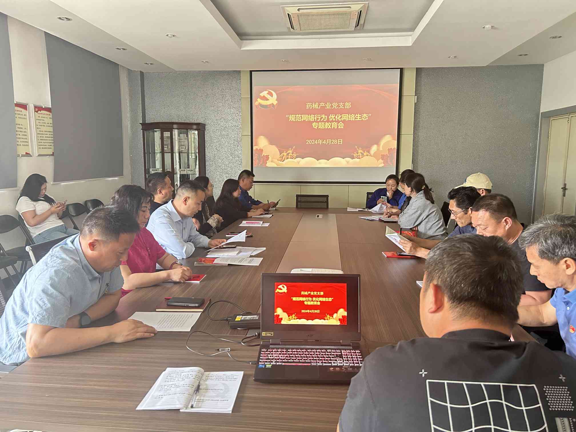 4月28日上午,为进一步规范党员网络行为,发挥党员在网络空间作用,按照省卫生健康委、医院党委专项工作要求,药械产业党支部在洛正药业一楼会议室举办“规范网络行为 优化网络生态”主题党日活动。党支部在洛党员20多名同志参加会议,支部书记陈文鹏主持会议。