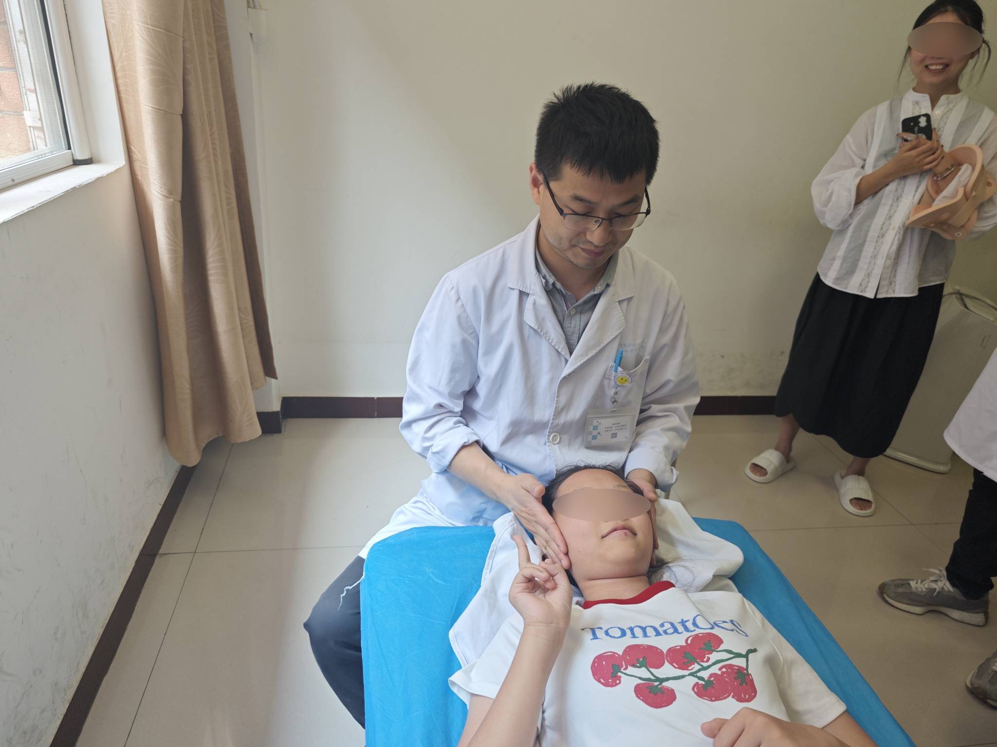 3个月前,家住西安的12岁女孩小崔出现头颈部向右侧歪斜的不适症状,先后在当地多家医院就诊治疗,尝试过外敷药物、局部针刀治疗,但没有明显好转。最后家人决定来到我院就诊,诊断为寰枢关节半脱位,入住我院骨关节病一科住院治疗。通过手法、熏洗、牵引等我院中医特色诊疗,小崔在2024年5月14日顺利出院。