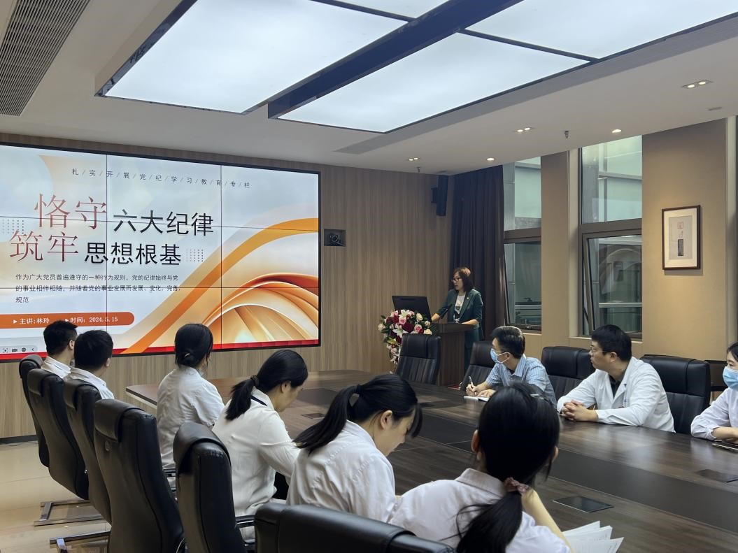 最后,支部书记林玲总结发言,“六大纪律”是维护党的团结统一、完成党的任务的保证,我们必须严格执行和维护党的纪律,必须自觉接受党的纪律的约束,才能确保我们的事业沿着正确的方向发展,为医院的高质量发展做出新的更大贡献。