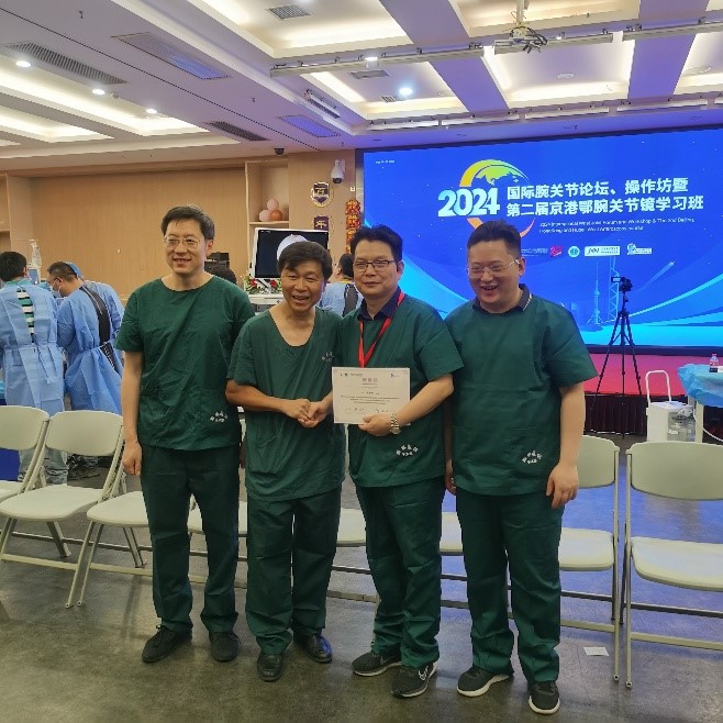 2024年国际腕关节论坛、操作坊暨第二届京港鄂腕关节镜学习班于5月17-19日在湖北省黄石市成功举办。我院郑州院区手外显微骨一科主任赵治伟受邀作为导师参加,与国内外著名手外科专家一道为来自全国各地的学员授课、传授腕关节镜操作方法。