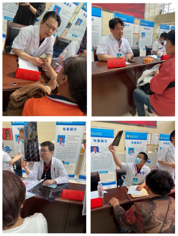 随后,我院专家志愿者们在浚县中医院门诊大厅开展大型义诊活动。义诊现场,专家们耐心细致地为前来咨询的患者答疑解惑,通过仔细的询诊、阅片及检查后,为患者制定了适宜的治疗方案并提出合理建议。我院专家团队的敬业和认真,让浚县广大人民群众及医务人员深受感动。