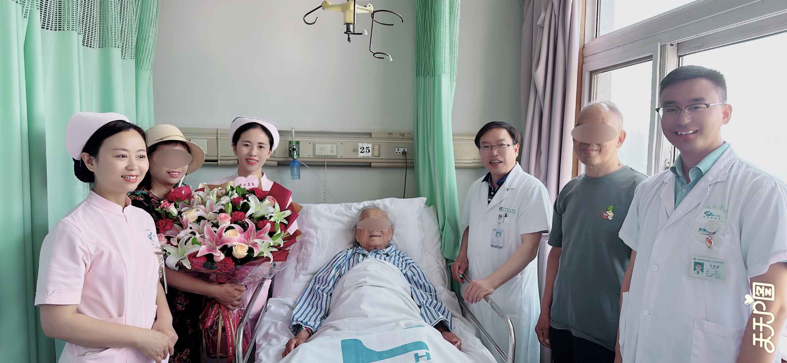 5月15日,手术顺利开展。由于王奶奶患有心衰、肺功能不全、曾植入心脏起搏器,术后麻醉科主诊医师牛黎利多次到病房与主管医生沟内科用药方案,在大家的共同努力下,5月25日老人顺利出院。