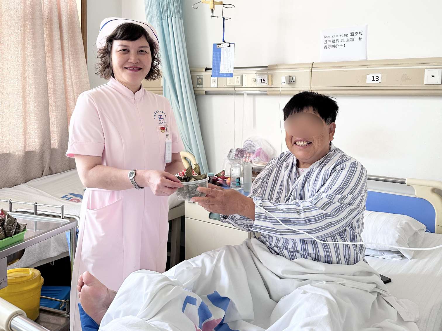 随后医院还开展了“情暖端午”爱心送粽子活动,病区里医护人员为广大患者朋友赠送了粽子,让大家真切地感受到中国传统的节日气氛,拉近医患之间的关系,更是时刻把患者放在心上,让他们感受到医院的关怀和温暖。
