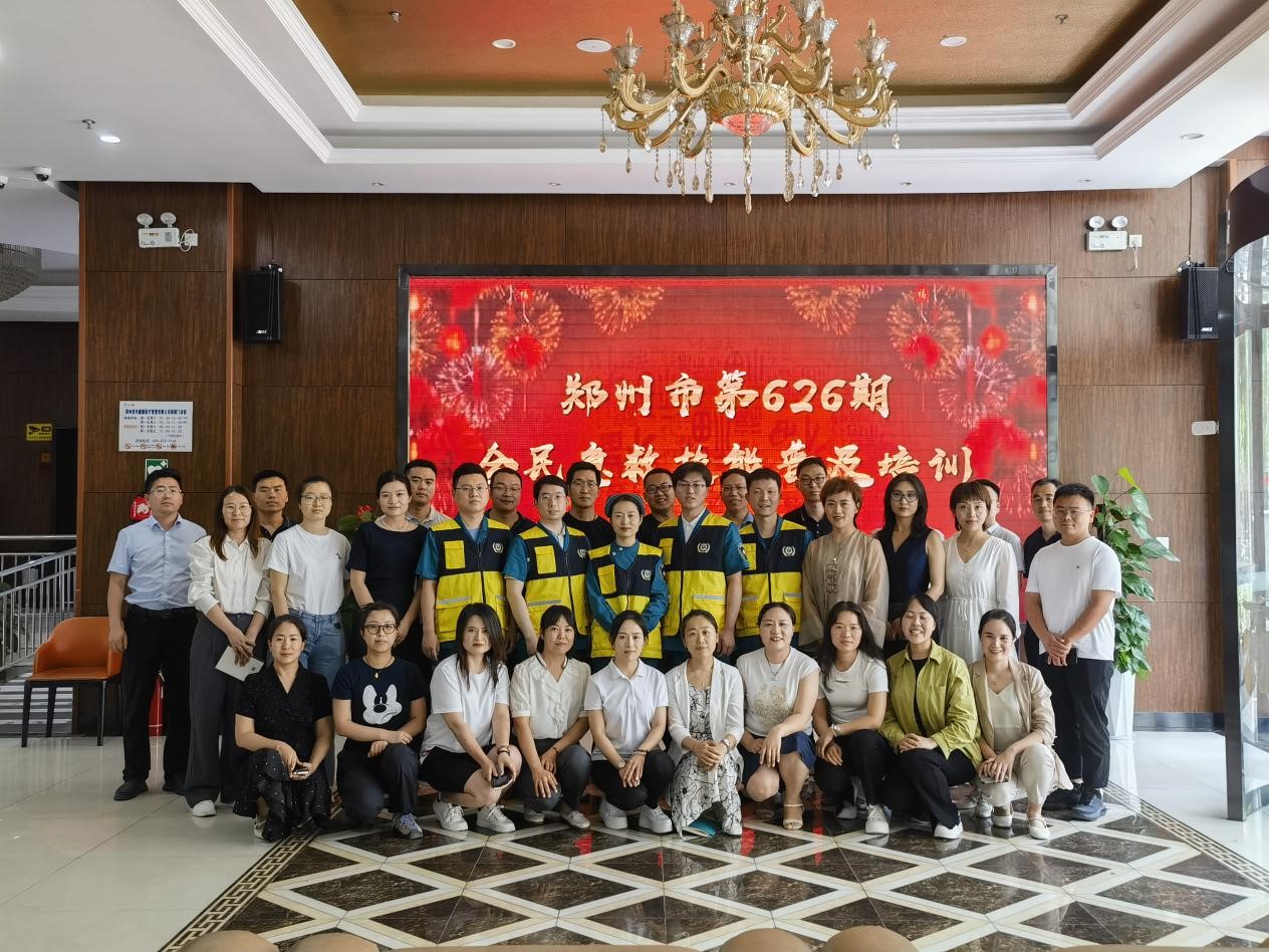 为贯彻和响应郑州市卫生健康委员会“全民急救技能普及”的政策和号召,我院郑州院区急诊科医护人员在郑州市紧急医疗救援中心的指导下,于2024年6月12日、13日走进美年大健康产业有限公司和中国移动通信集团设计院有限公司,开展郑州市第626期、627期全民急救技能普及培训,共有58名学员接受培训。