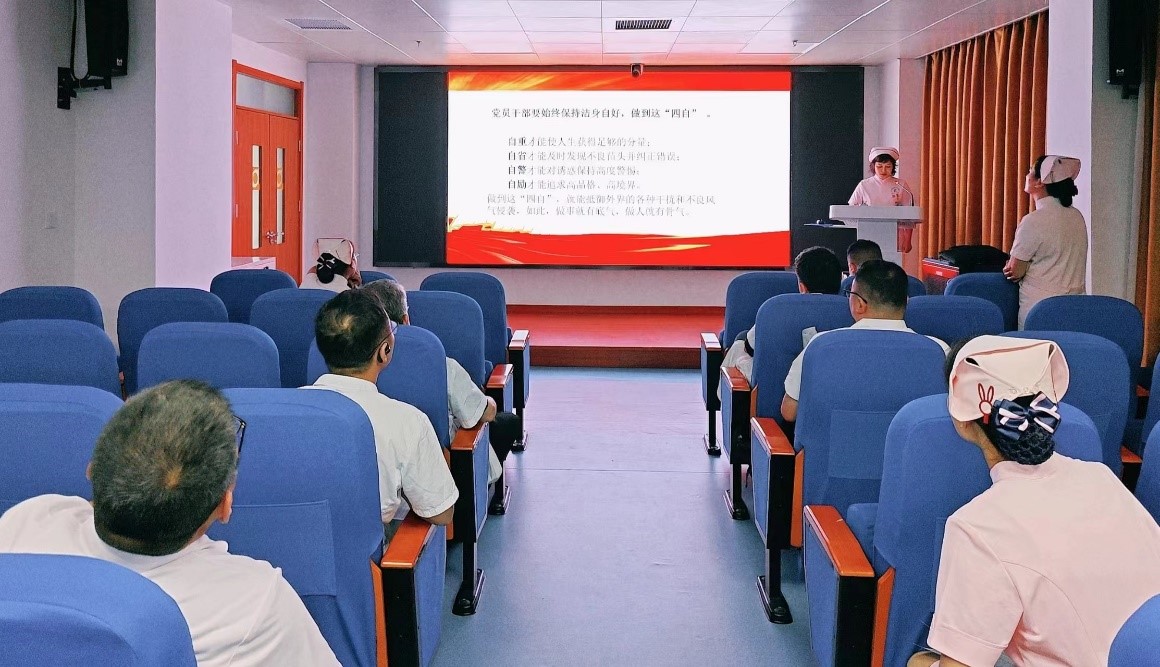 首先,临床二总支宣传委员邹吉锋同志带领全体党员学习党课《严守纪律标杆,筑牢廉洁自律》。邹吉锋同志强调,作为党员干部,我们必须始终保持洁身自好,坚守道德底线,做到自重、自省、自警、自励。邹吉锋同志详细阐述了“四自”的内涵和要求:“自重”是党员自我尊重、自我提升的基础,“自省”是及时发现和纠正错误的关键,“自警”是对诱惑保持高度警惕的保证,“自励”则是追求高品格、高境界的动力。只有做 到这“四自”,党员才能抵御外界的各种干扰和不良风气侵袭,保持清正廉洁的政治本色。邹吉锋同志通过深刻的分析,让党员们深刻认识到廉洁自律的重要性,激发了大家加强党性修养、提升政治觉悟的积极性和主动性。