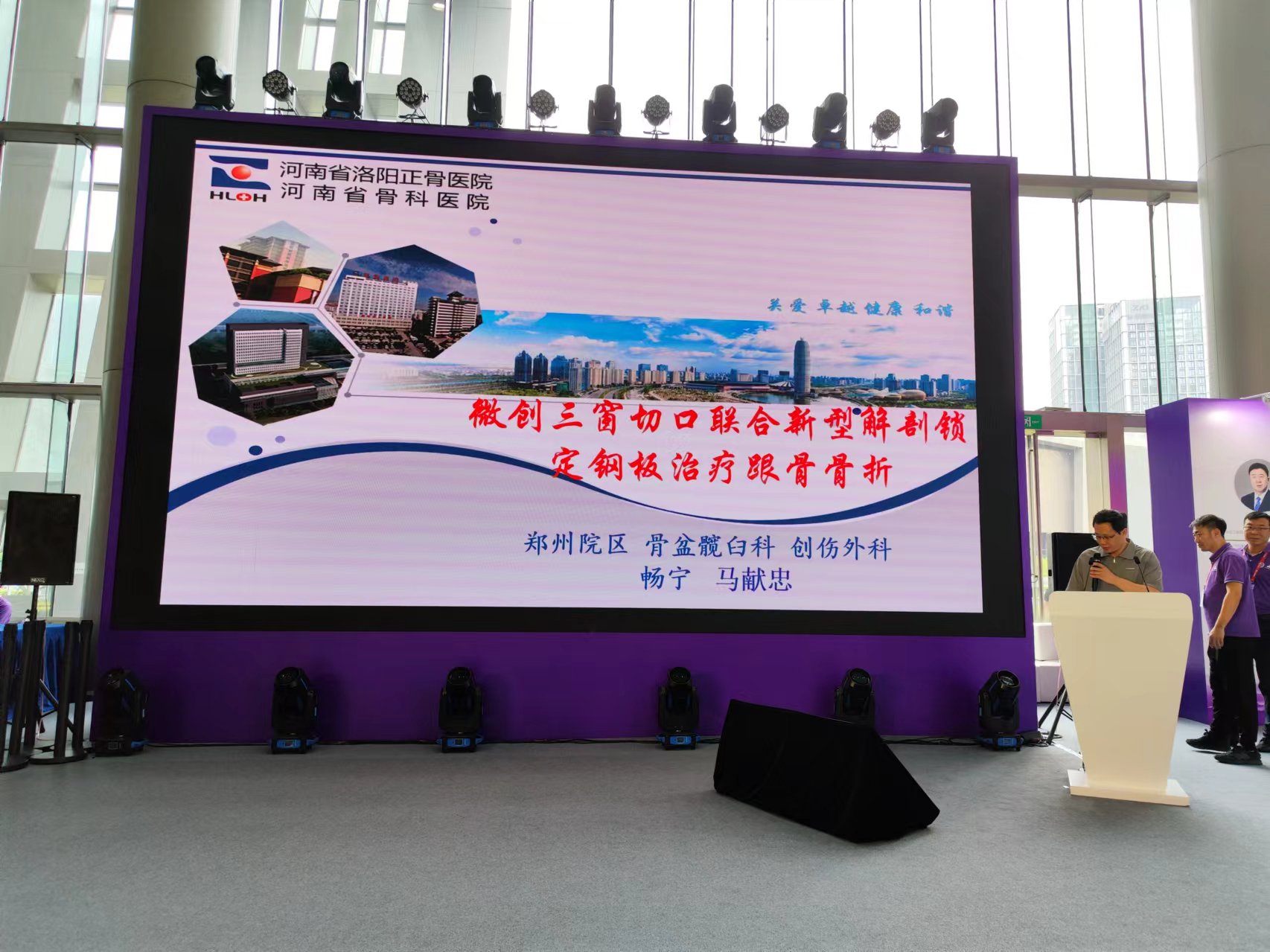在会议创新会场,全国共有三十个发明专利遴选参展,其中马献忠主任的发明专利(新型肩胛骨解剖锁定板,新型胫骨远端前侧解剖锁定板)参展。畅宁医生在分会场作《微创三窗切口联合新型解剖锁定钢板治疗跟骨骨折》发言,分享了跟骨骨折微创治疗的体会及马献忠主任对新型跟骨钢板创新设计理念。