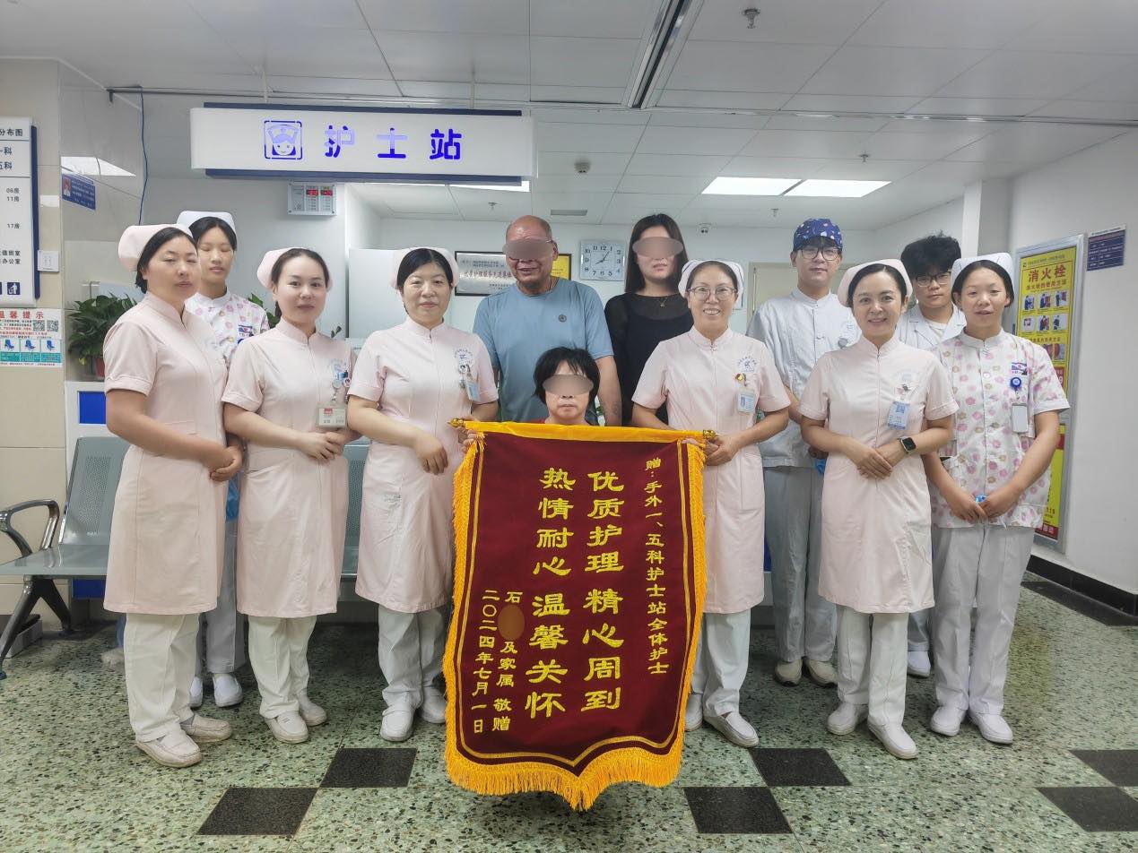 为了表达对医护人员的感激之情,石女士及其家人在出院之际特意定制了两面锦旗。这不仅是对医护人员辛勤工作的认可,更是医护患关系和谐美好的见证,它象征着患者与医护人员之间的信任与理解,也体现了医护人员对患者无私奉献的精神。