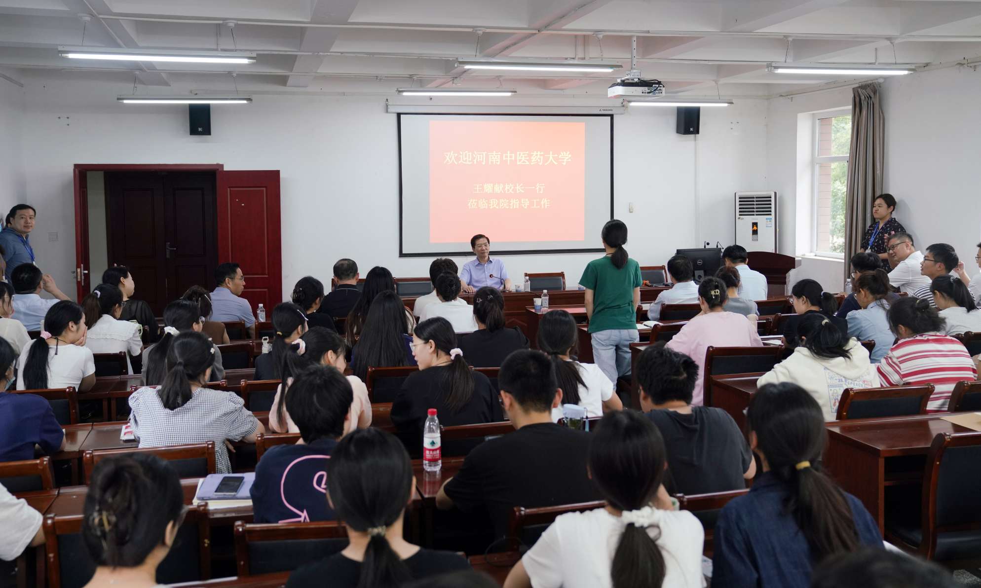参观途中,王耀献校长一行还与正在我院学习的河南中医药大学学子见面,听取学生学习心得,交流中医药学习感悟。