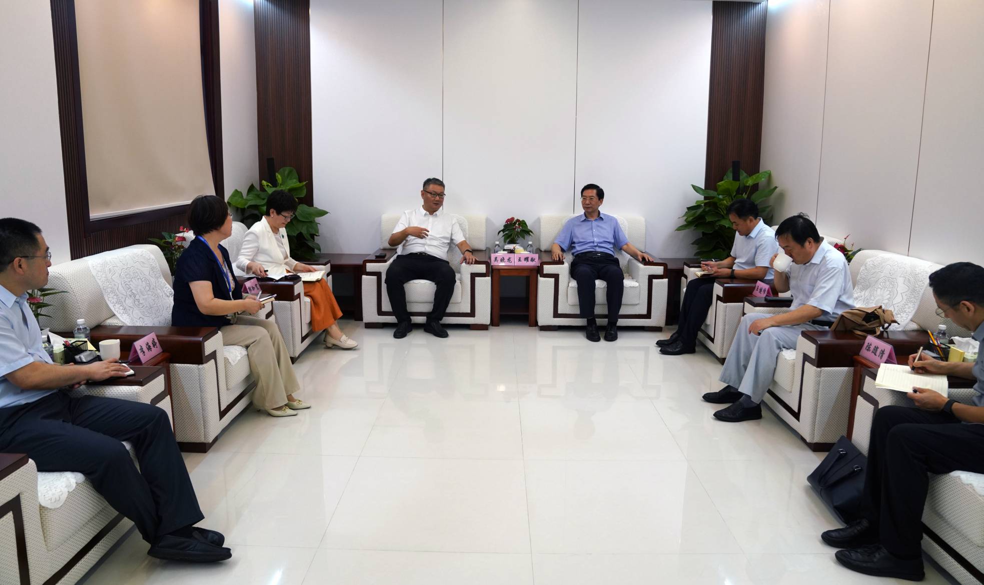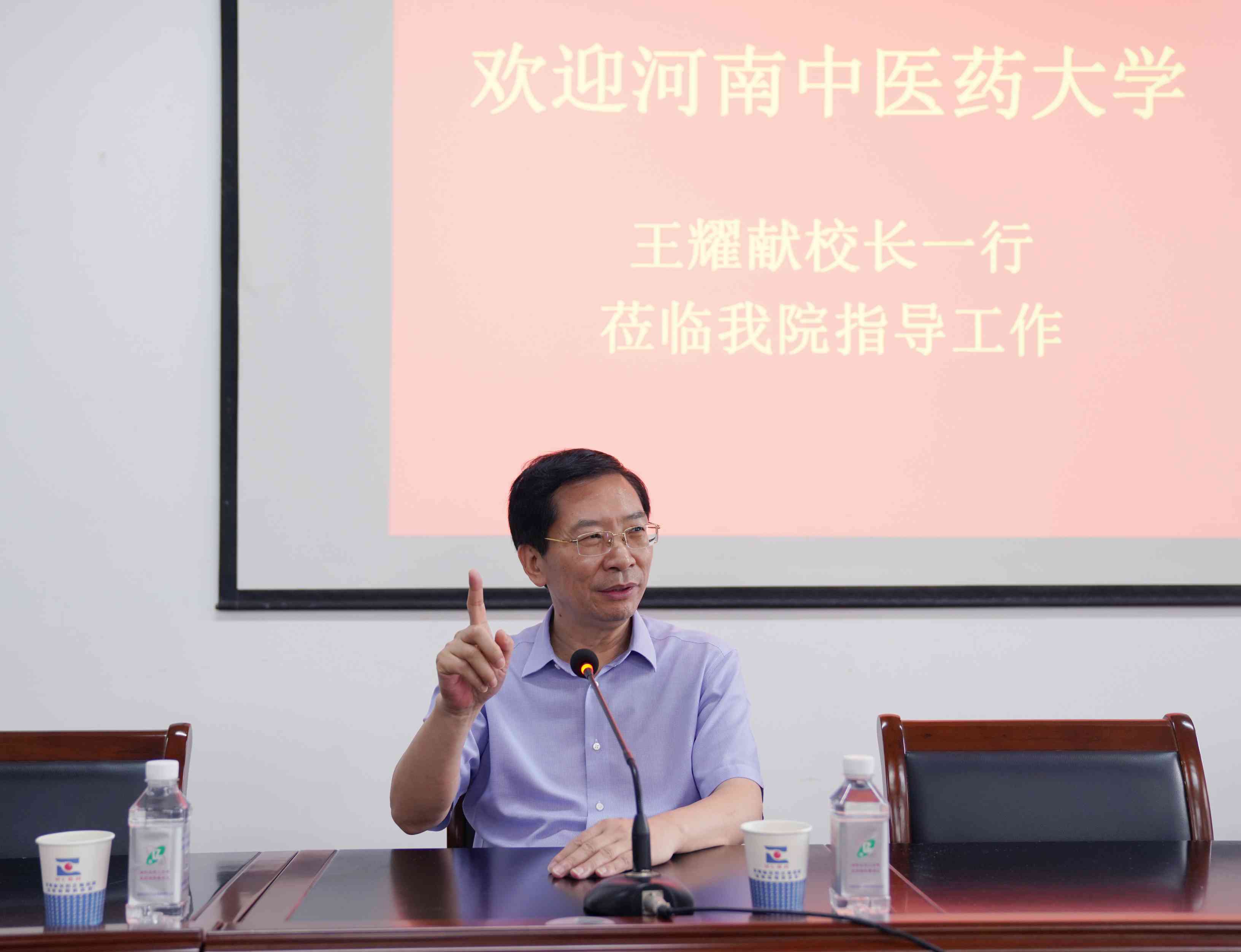 2024年7月15日,河南中医药大学校长王耀献、办公室主任王健峰、研究生院常务副院长陈随清、社会合作办公室主任赵振营、教务部副部长常学辉一行到我院参观调研,我院院长吴晓龙、副院长郭珈宜携相关职能部门负责人陪同调研座谈。