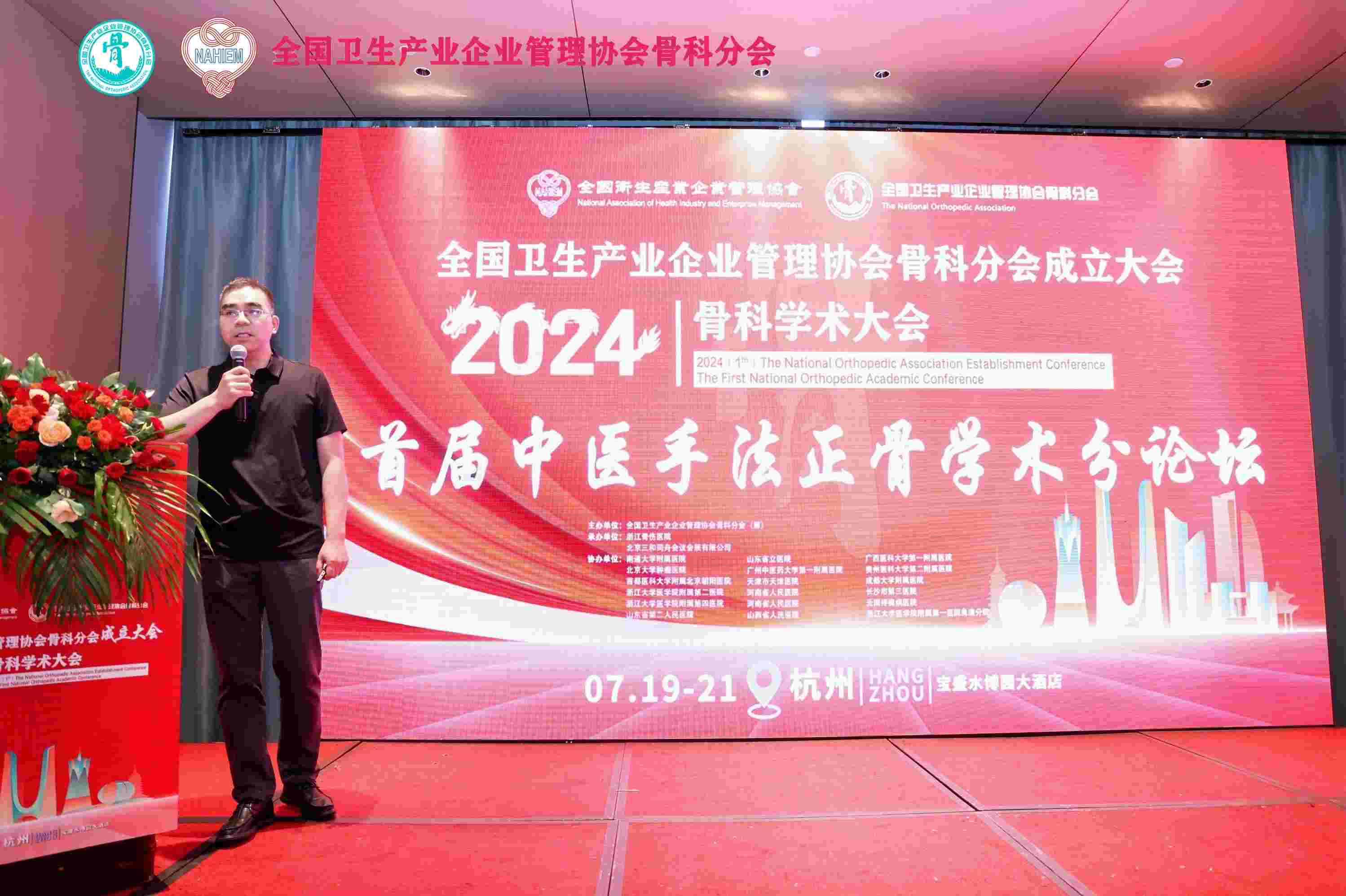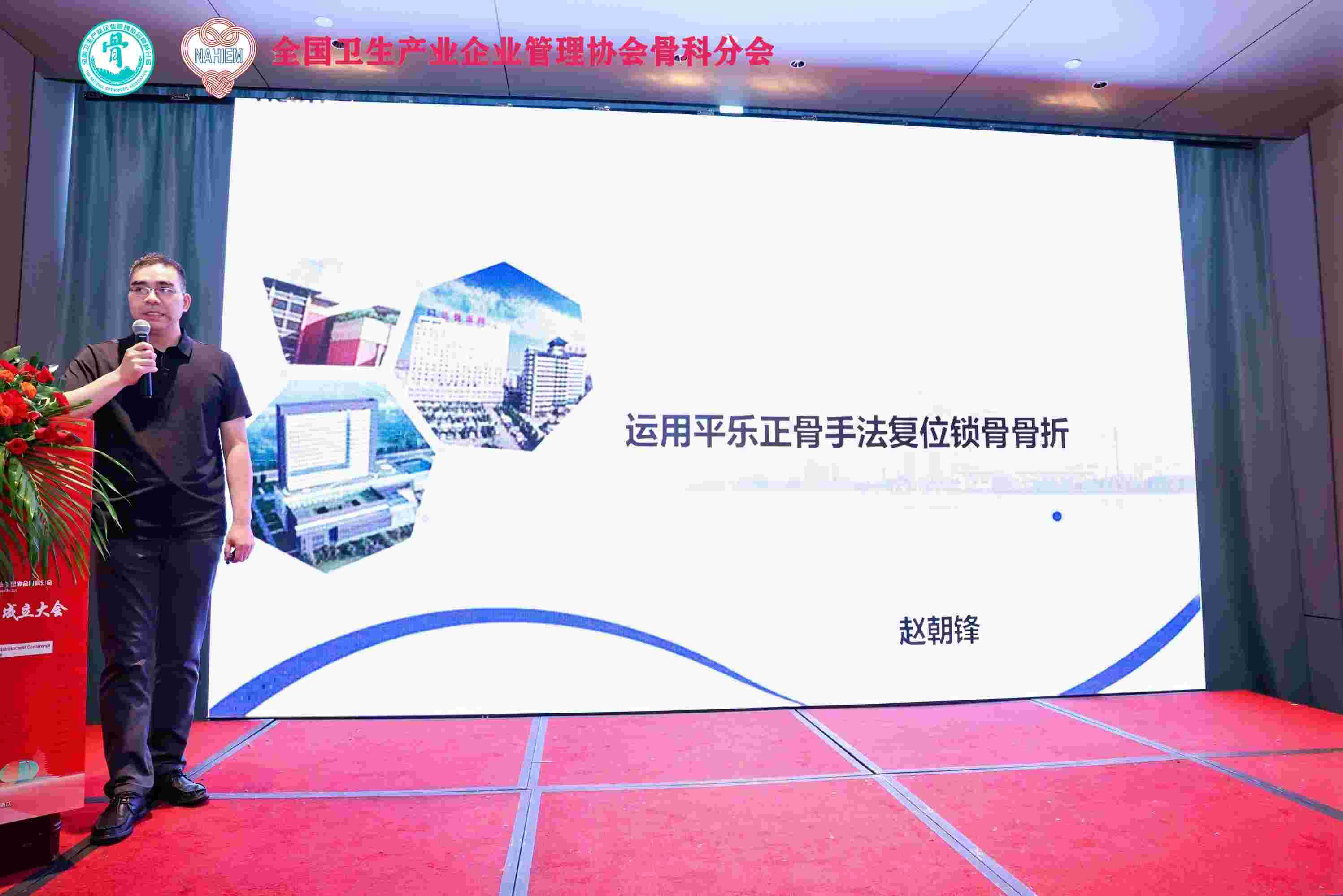 全国卫生产业企业管理协会骨科分会成立大会2024骨科学术大会暨首届中医手法正骨学术分论坛于7月19日至21日在杭州成功举办,我院手法正骨二科主诊医师赵朝锋在此次会议上担任主持人并进行了大会发言:运用平乐正骨手法复位锁骨骨折。