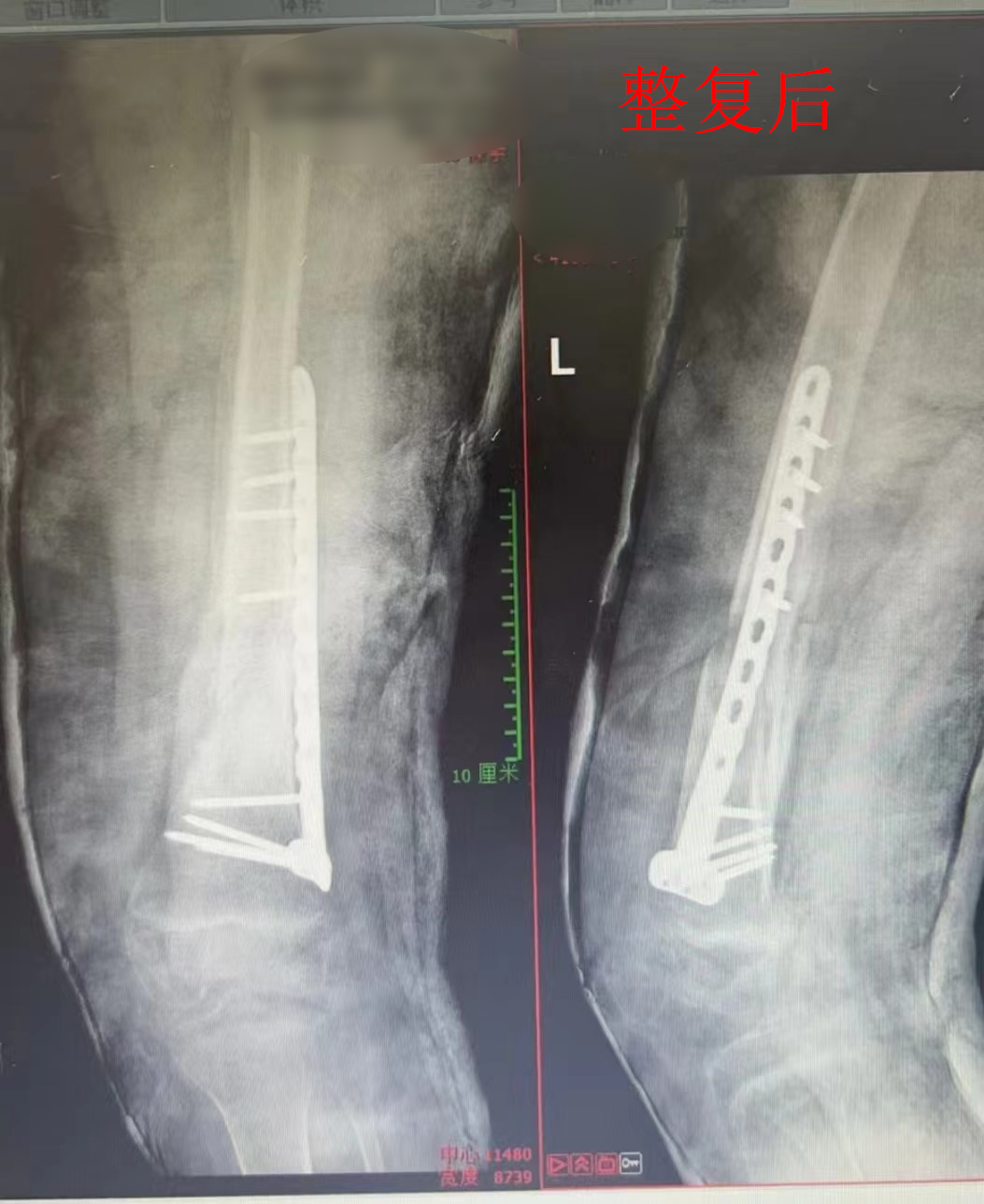 这对夫妻的10岁女儿,4个月前不幸遭遇车祸导致左侧大腿骨折,车祸后在当地医院手术,但术后效果不良,骨折处不愈合,并且钢板弯曲,下肢畸形,当地医院建议再次手术取出钢板,髋部取骨填充断端。家长百愁莫展,不仅孩子学业中断,而且腿部20厘米长的手术疤痕使孩子感到恐惧,万般无奈之下一家人先后到郑州多家大型医院就诊,却均被建议手术。最后,家属抱着一丝希望到我院求诊,孩子妈妈对着万富安主任说:“能不手术最好,如果必须做手术,还是要到咱洛阳正骨医院做。”
