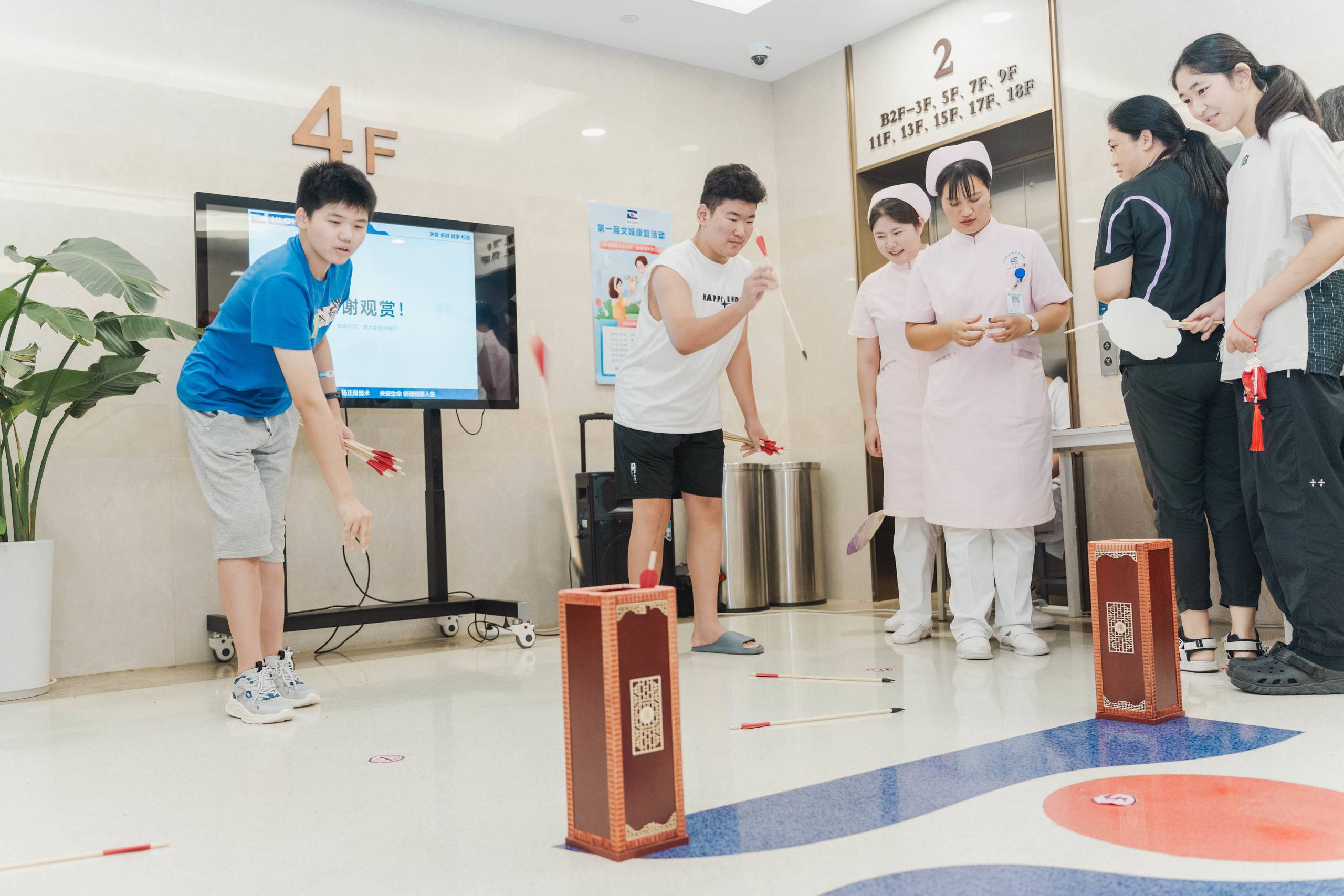 活动中,科室医护人员为患者及家属开展科普讲座,帮助患者们更好地了解疾病,树立正确的康复理念,并通过体操小课堂教大家如何通过康复锻炼来改善身体状况。活动还有轻松愉快的游戏环节,包括妙语连珠、你比我猜以及中华传统项目投壶等,极大的丰富了患者及家属们的体验,大家积极参与,不仅增添此次活动的乐趣,也更加增进了患者与医护人员的交流与合作。参加活动的患者和家属对此次活动给与了高度的评价,每一位参与者都全情投入,不仅享受了活动带来的乐趣,也在康复之路上迈出了坚实的一步。