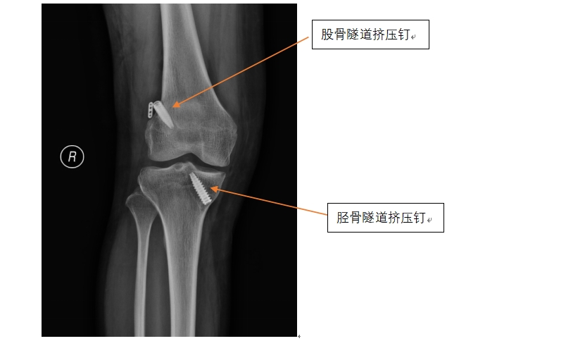 前叉韧带翻修手术难度要明显大于初次手术,术前黄遂柱博士团队就对第一次手术时制作的骨隧道进行了认真评估,最困难的情况就是第一次手术的骨隧道位置不是特别理想,但又没有在完全错误的位置上,最终黄博士团队还是克服了各种困难,成功地实施了人工韧带翻修手术。术后配合我院特有的中医药技术以及护理团队的密切配合,患者恢复非常顺利,术后一周患者出院时已经能够比较自由地脱拐行走,患者对治疗结果非常满意,术前的焦虑情绪也一扫而光。