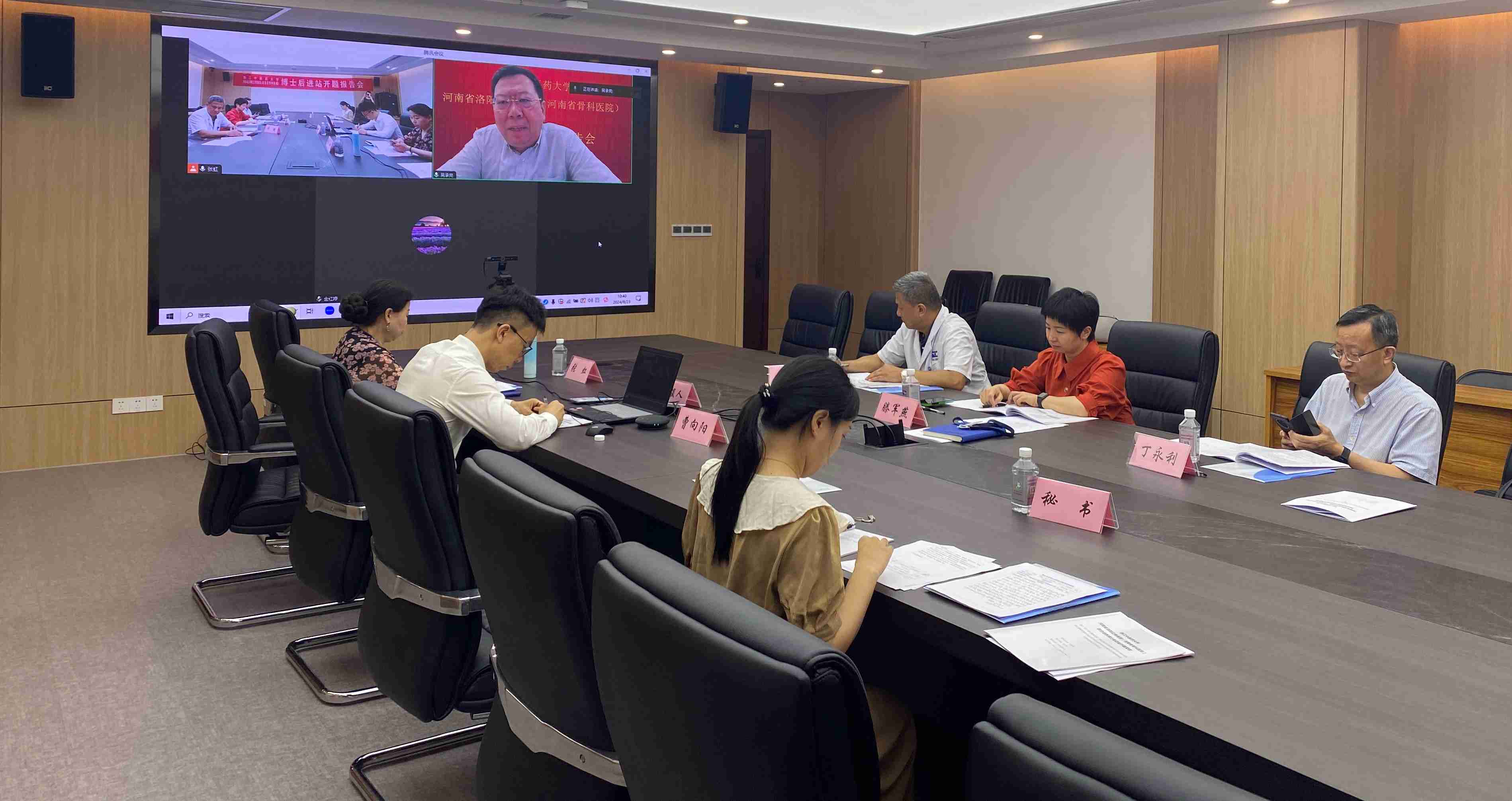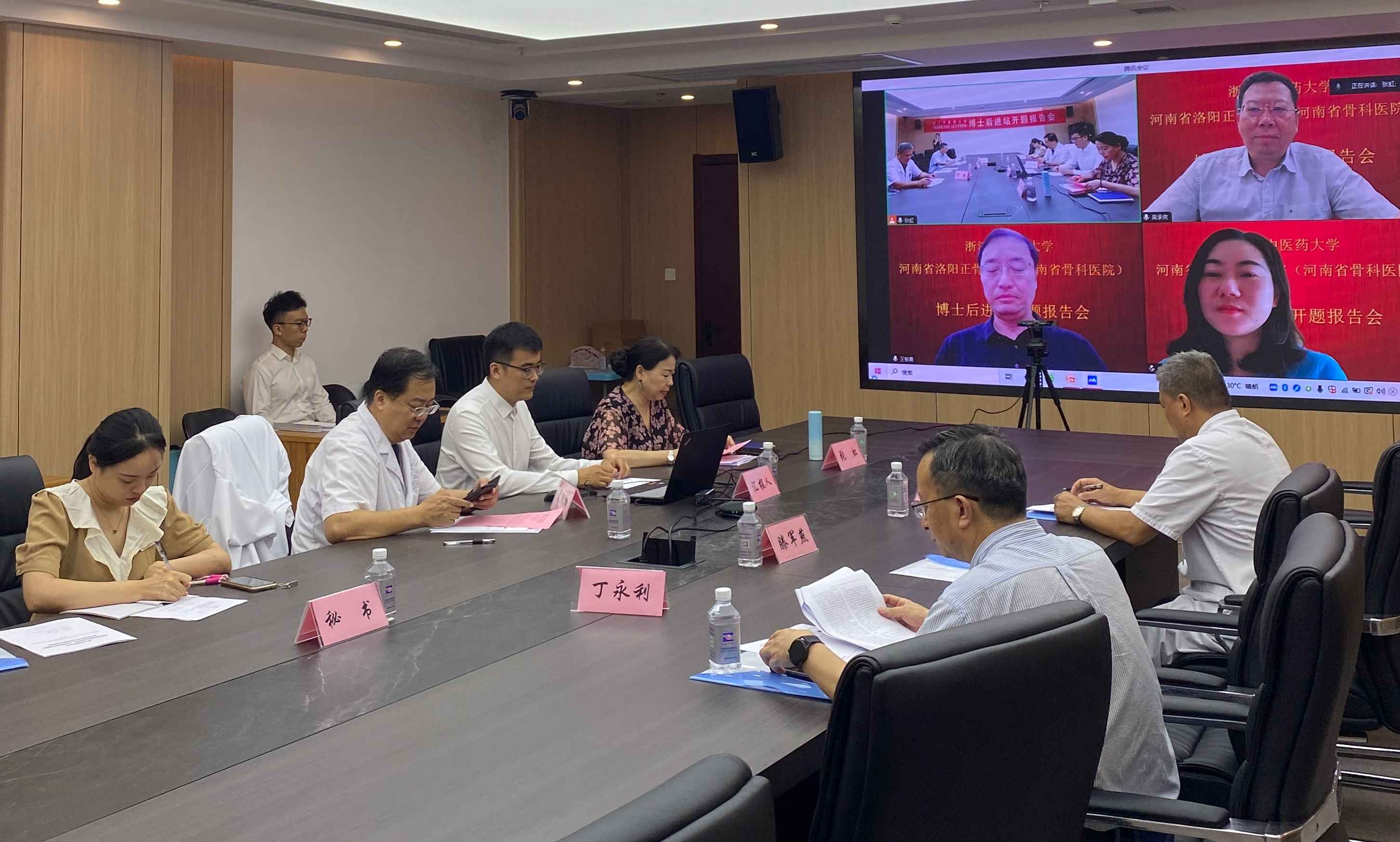 8月23日,浙江中医药大学与我院联合培养博士后王延雷、李健阳进站开题报告会在郑州院区科研楼一号会议室(线上、线下结合)举行。