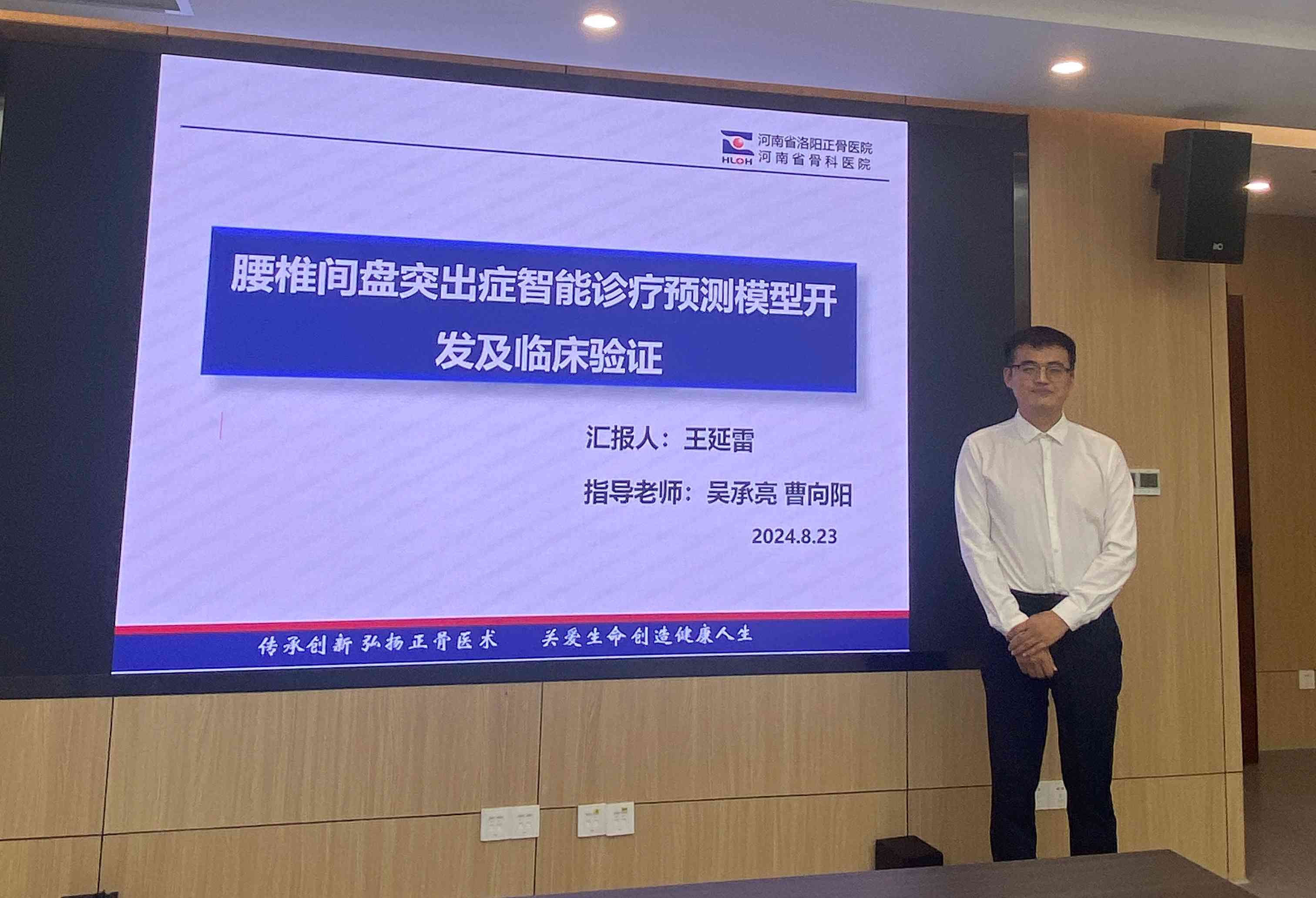 王延雷博士后、李健阳博士后分别以《腰椎间盘突出症智能诊疗预测模型开发及临床验证》《基于“肾主骨生髓通于脑”理论探讨驻春胶囊调控HPA轴介导的肾上腺髓质激素分泌促进BMSCs成骨分化干预绝经后骨质疏松症的物质基础及作用机制》为题,就研究背景、研究目的与内容、研究方案、研究可行性与创新点等方面向各位专家进行了详细汇报。导师吴承亮教授和曹向阳教授对开题报告的立项意义分别进行了补充。