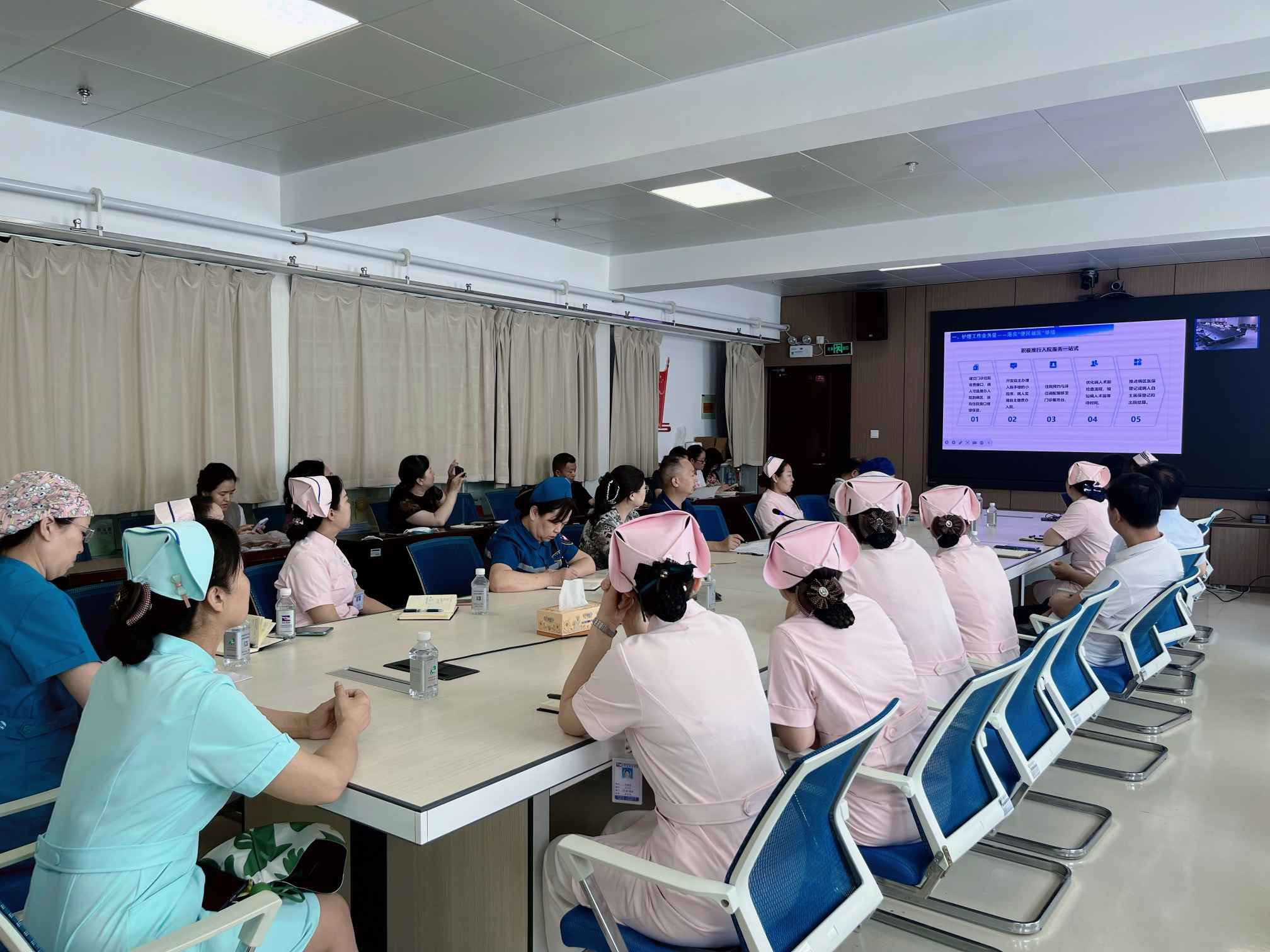 会议最后,赵明宇副院长再次明确护理质量和安全管理的重要性,并提出了几点要求:一要关心关爱护士,关注新入职护士,提升质量安全意识,守住医疗安全的底线与红线;二要时刻树立服务意识,加强护患之间沟通,以患者需求为出发点,不断提升就医体验;三要善于运用信息化手段,掌握数据统计思维;四要积极开展新项目、新技术,发挥中医护理特色优势,进一步创新服务模式。同时希望在今后的工作中,各专科护士充分发挥引领效能,为我院护理学科建设与发展奠定基础。并不断提升护理能力及综合素质,打造一支勇于创新、勤勉刻苦、精益求精、争先创优的护理队伍。不断创新,找出亮点,突出亮点,为医院发展贡献我们的护理智慧。