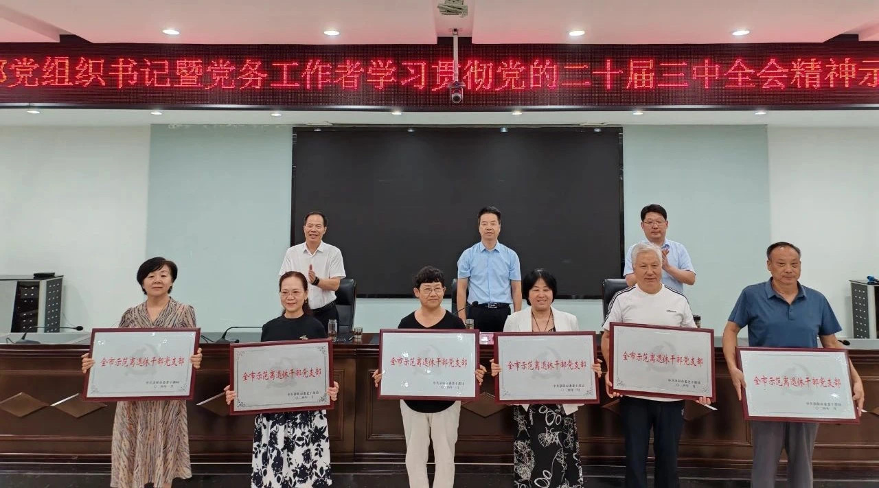 开班仪式前,市老干部局举行了第三批市级示范离退休干部党支部授牌仪式。我院离退休党总支一支部被授予“全市示范离退休干部党支部”称号,离退休党总支书记毋玉梅同志上台领奖。