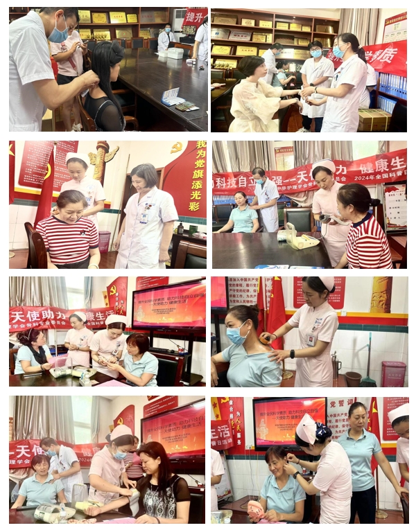 活动现场,气氛热烈而有序。对于教师们提出的各种健康问题,我院的专家们都给予了耐心的解答,认真的为每一位教师进行健康检查,并针对教师们的身体状况提供了专业的指导,还为教师们提供了中医特色疗法,如:耳穴压豆、火龙罐、推拿、针灸、经络拍打等,并免费发放了我院的特色膏药。