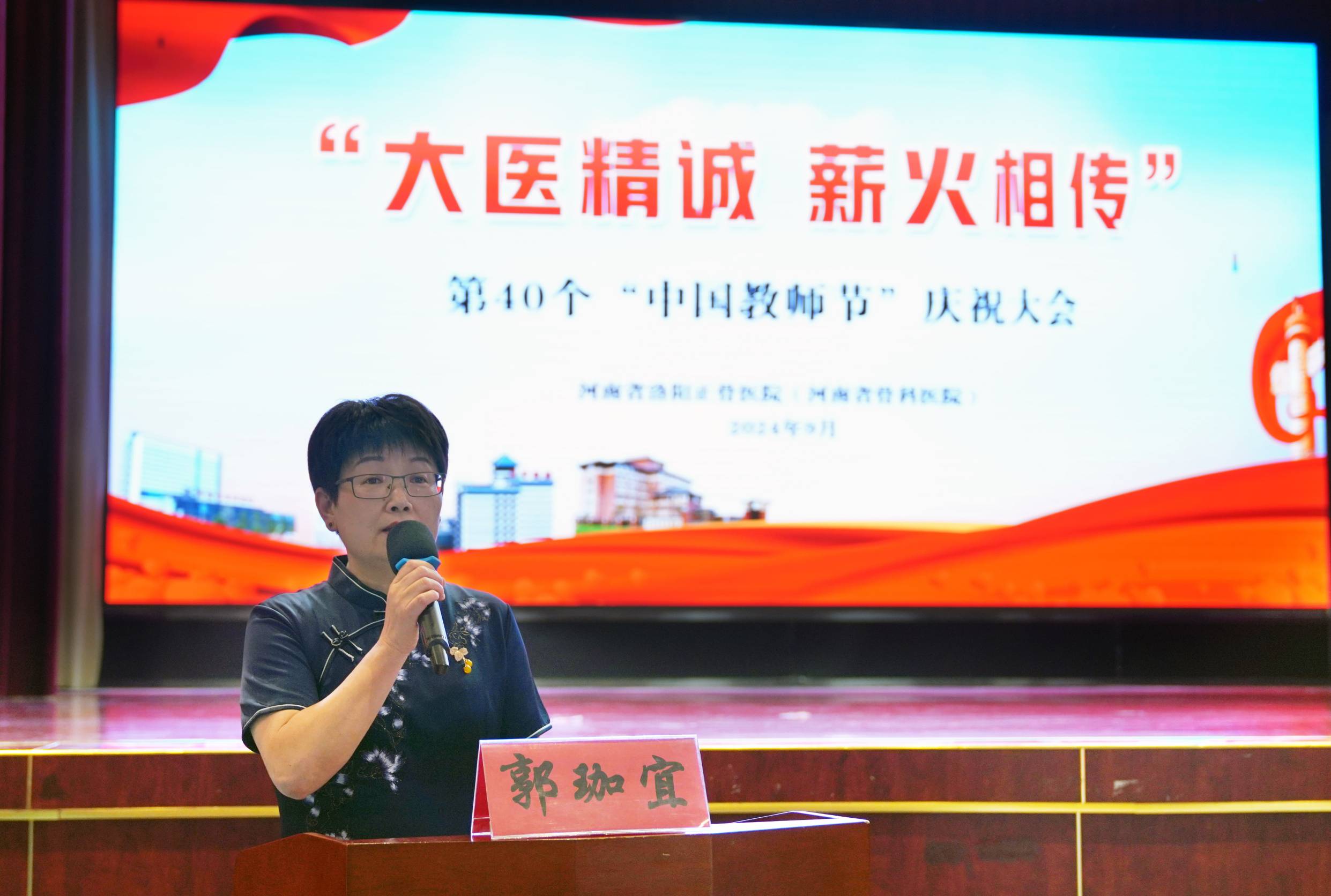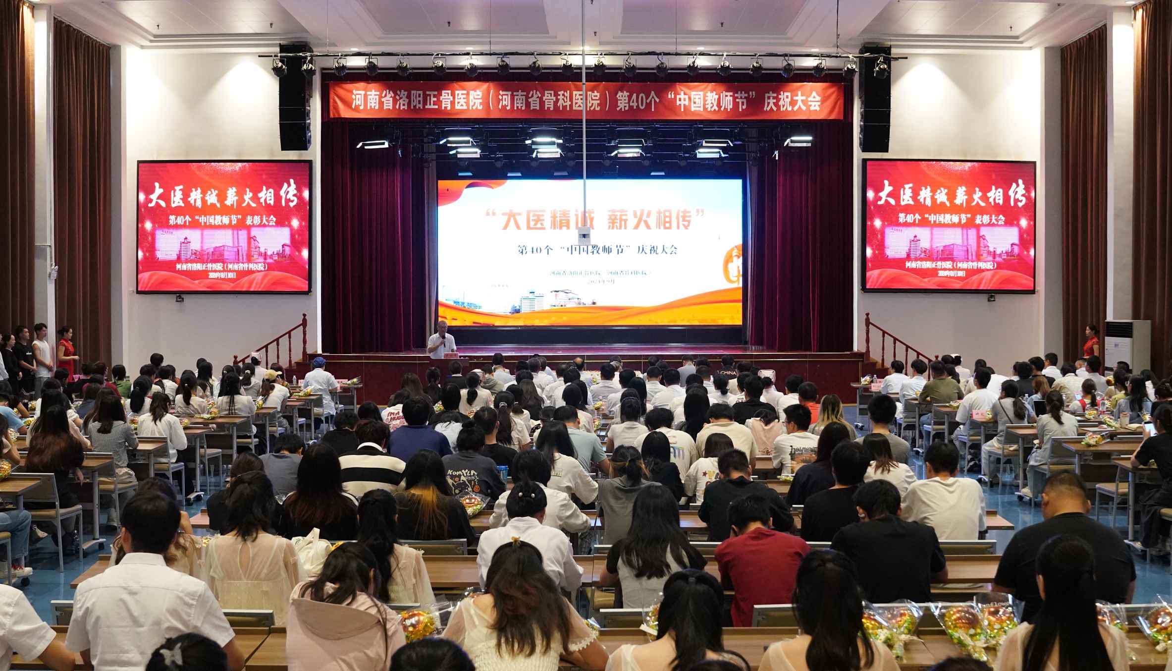 2024年9月10日下午16:00,在我院东花坛院区会议中心召开以“大医精诚 薪火相传”为主题的第40个中国教师节庆祝表彰大会。