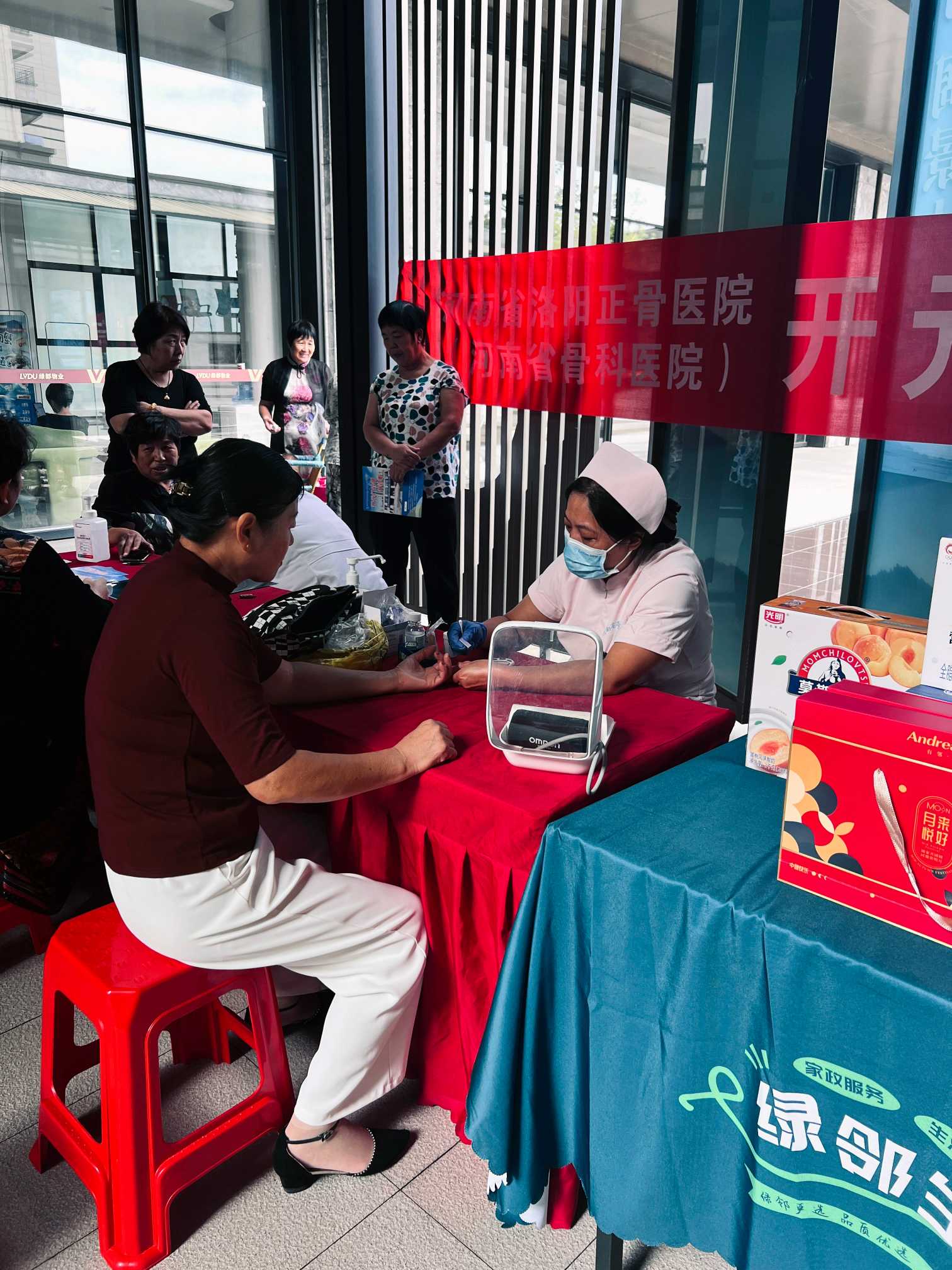 中秋佳节,金桂飘香。9月12日,受洛龙区“绿都中梁?河风雅叙”小区邀请,开元门诊部医师罗姣、护士张媛和行政副主任卫笑颜一行三人前往开展义诊活动,为小区居民提供优质的医疗服务。