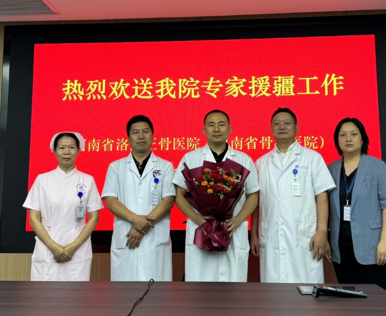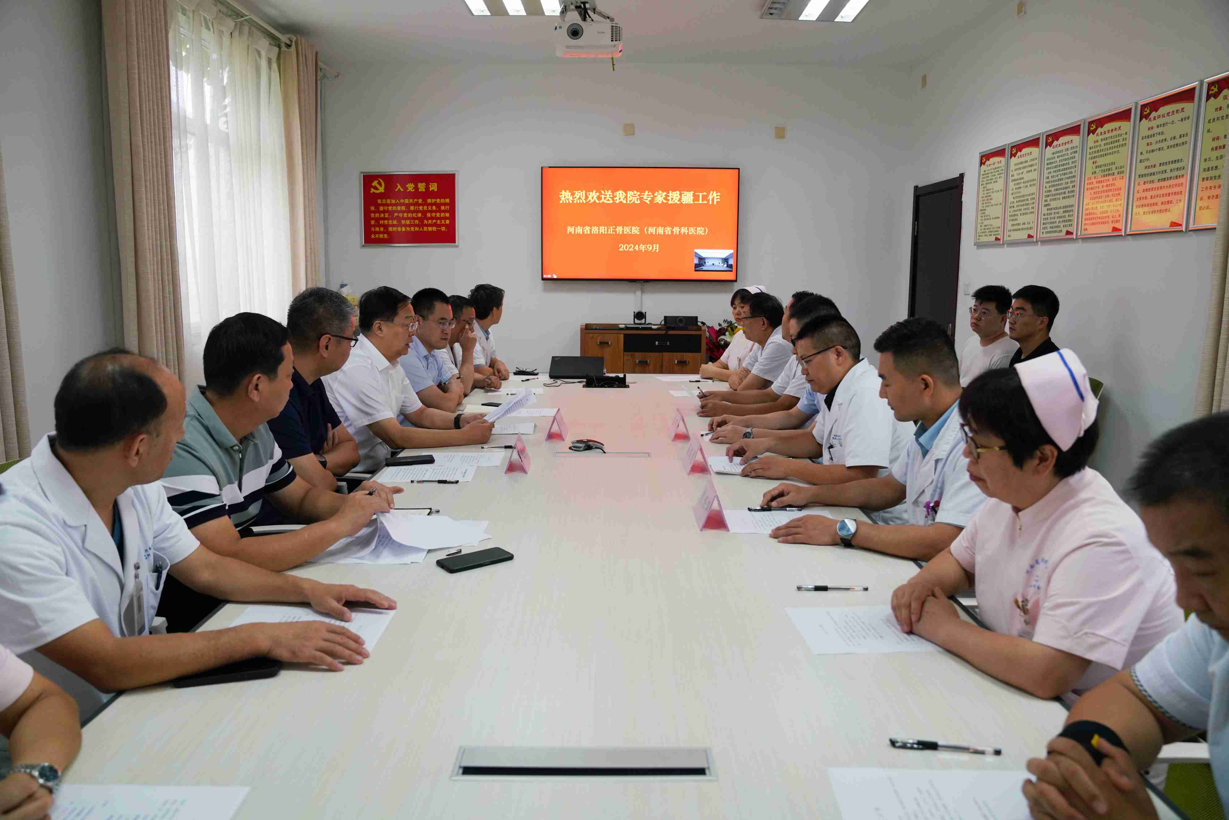 吴晓龙院长对援疆队员提出三点要求。一是要提高政治站位。援疆队员不仅代表医院,更代表河南的形象,要坚决服从我省援哈前方指挥部的工作要求和哈密市中医医院的具体安排,牢记援疆医疗的光荣使命。二是要保持业务水平。把援疆经历当作历练自己的平台,利用此次机会丰富自己的业务知识,发挥自身专业优势为当地骨伤患者提供力所能及的服务,结合当地医院实际需求全心全意开展好工作。三是要加速工作融入。尽快适应当地的工作和生活环境,确保此次援疆工作顺利完成。最后,吴晓龙院长强调各位队员在援疆期间要确保安全,期待大家光荣凯旋。