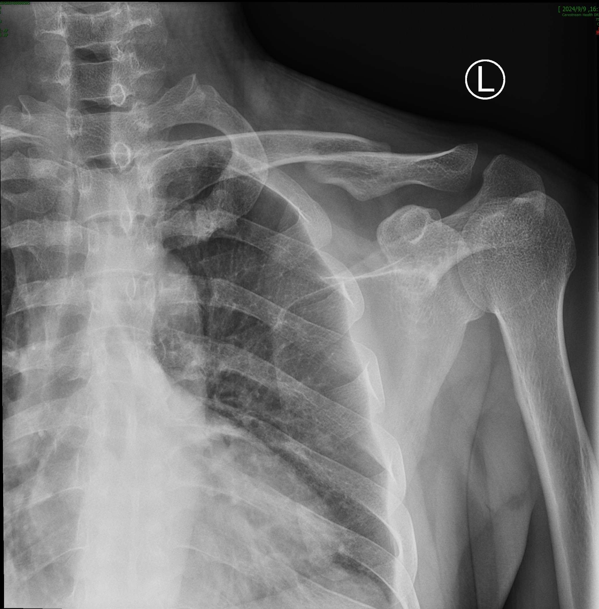 近日,一位36岁男性患者,因骑电动车摔倒,致左肩部肿痛、活动受限,在当地医院检查,拍片显示“左锁骨中段骨折、断端错位明显”,建议手术治疗,患者不想手术,便来到我院手法正骨科就诊。