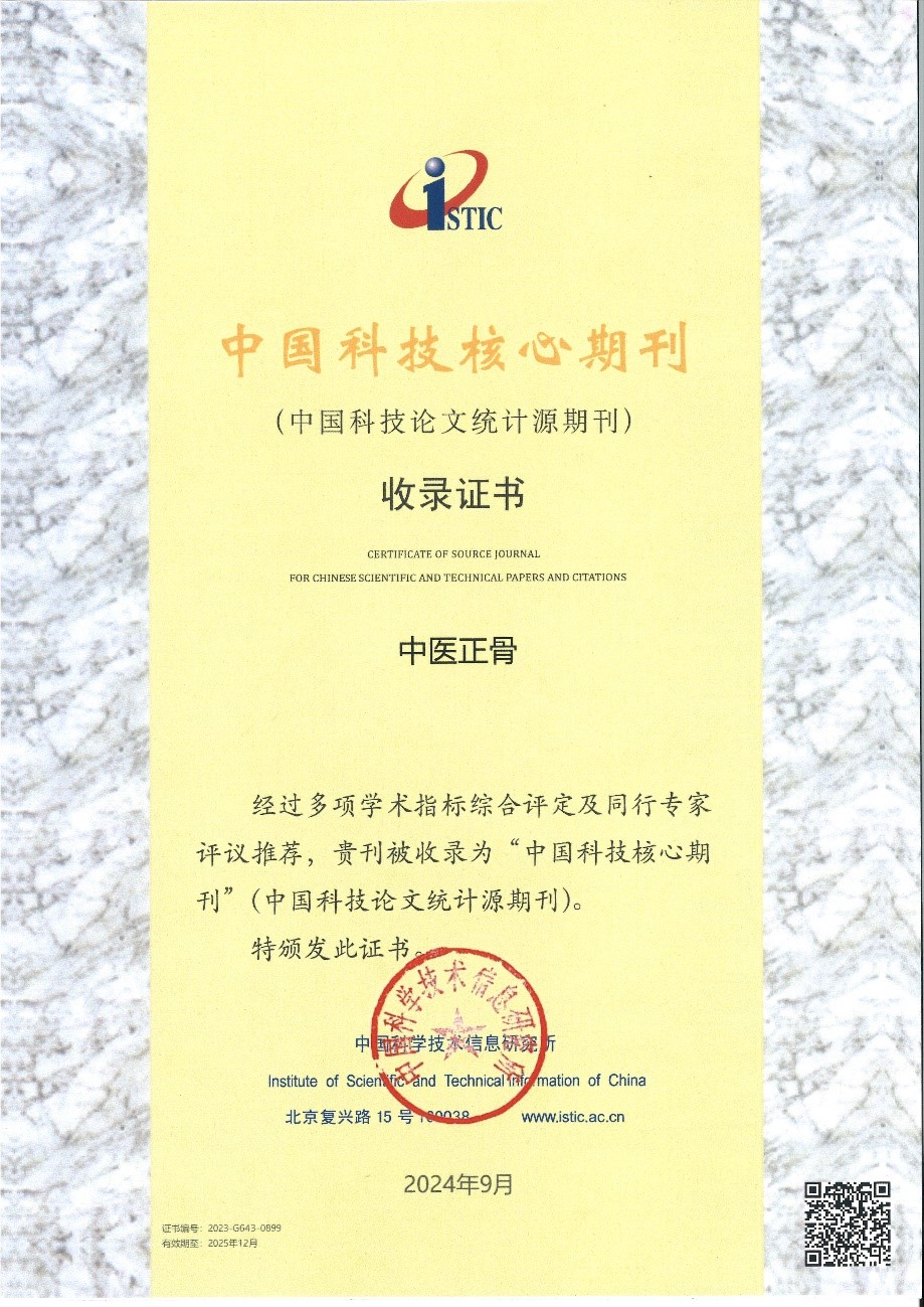 2024年9月20日,备受瞩目的“中国科技论文统计结果发布会暨中国一流科技论文世界影响力评价论坛”在北京顺利召开。会议发布了《2024年版科技期刊引证报告》,《中医正骨》杂志再度入选“中国科技核心期刊”(中国科技论文统计源期刊)。
