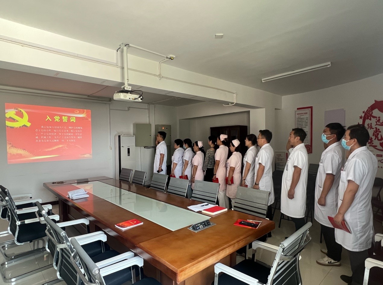 最后,进入重温入党誓词环节,范亚朋同志领誓,全体党员重温入党誓词宣誓。