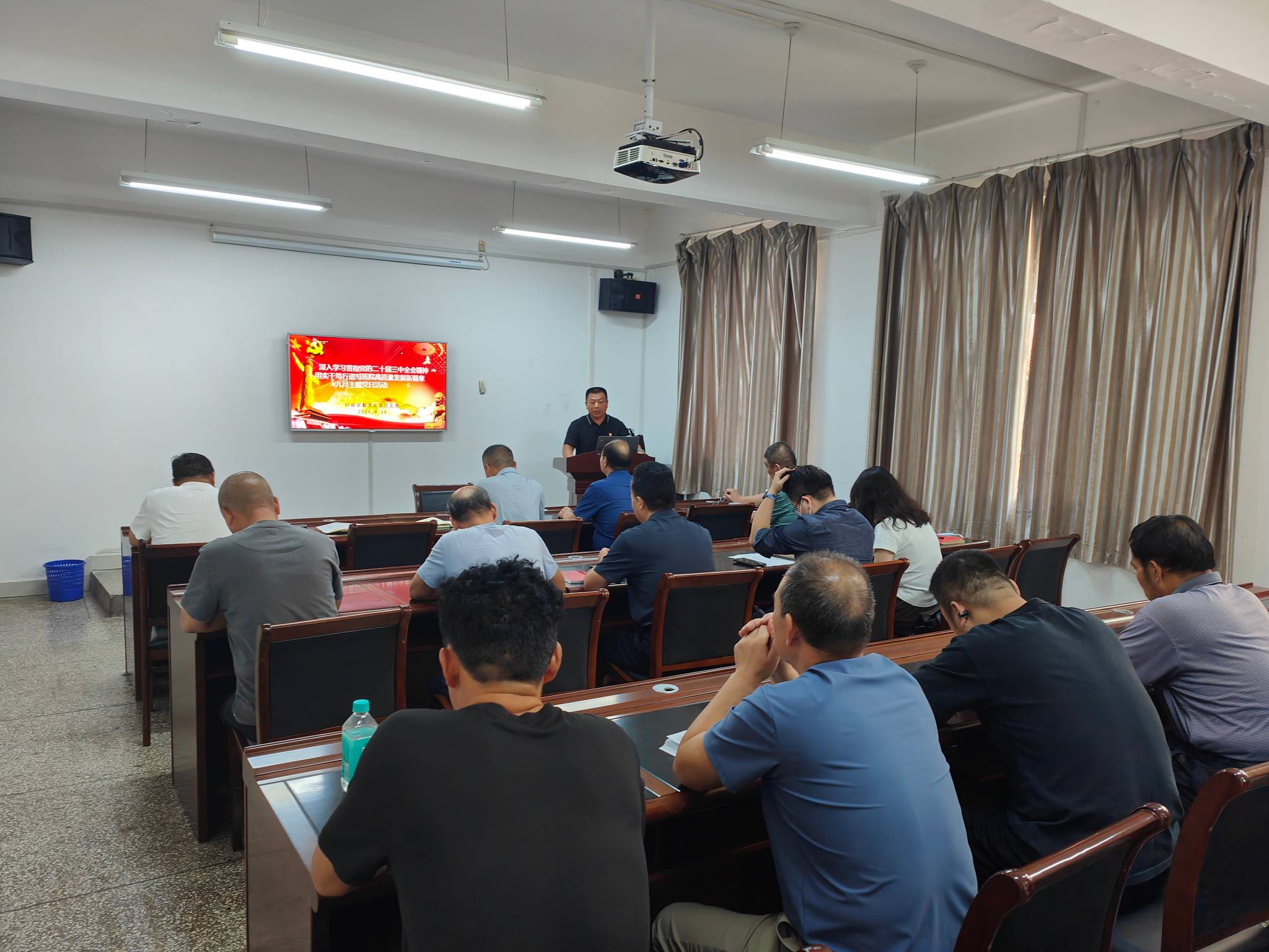 为深入学习贯彻党的二十届三中全会精神,进一步统一思想、凝聚共识、明确方向,9月25日下午,行政后勤党总支四支部在6号楼202会议室召开“深入学习贯彻党的二十届三中全会精神 用实干笃行谱写医院高质量发展新篇章”主题党日活动暨党员大会,本次会议刘学亮副院长及全体党员参加会议,支部书记张宏都主持会议。