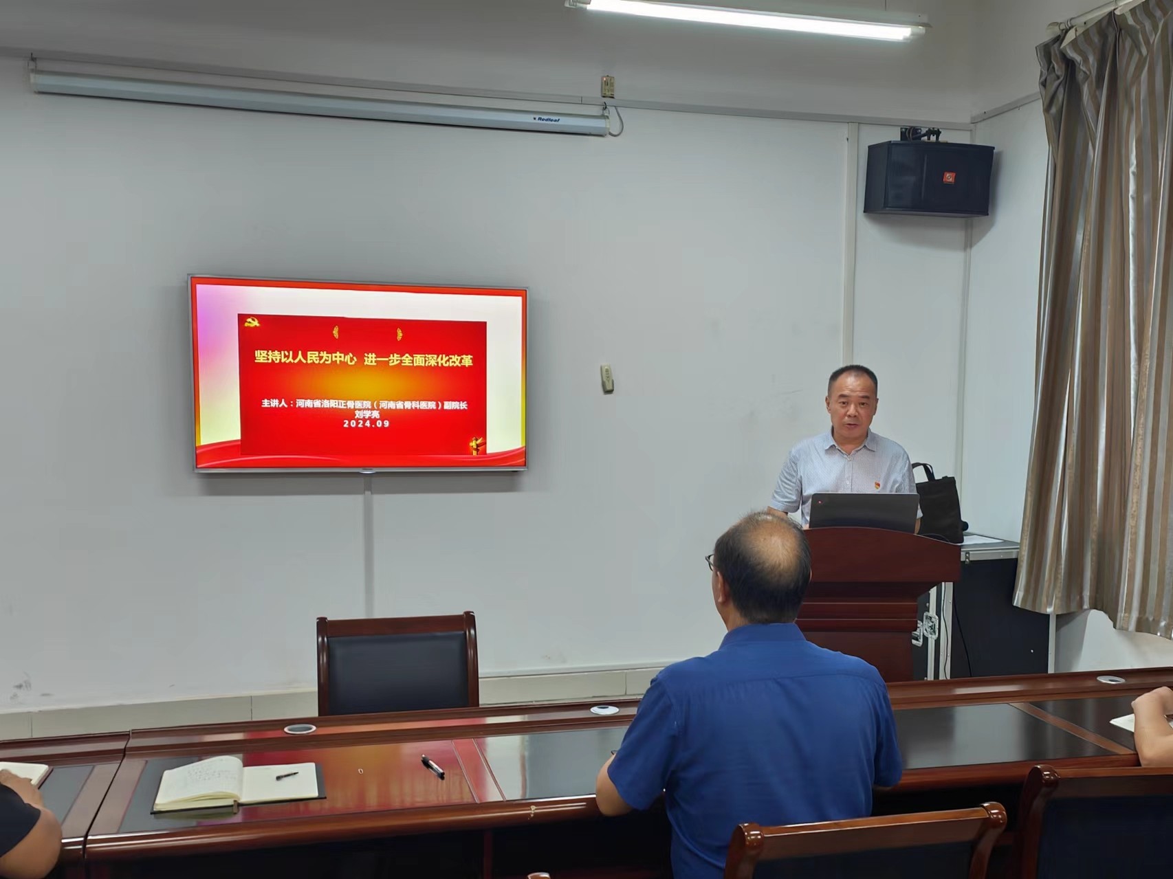 会上,刘学亮副院长作《坚持以人民为中心 进一步全面深化改革》专题授课,紧紧围绕习近平总书记在党的二十届三中全会上的重要讲话和全会《决定》,结合医院工作实际,从深刻认识党的二十届三中全会的重大意义、进一步全面深化改革要把牢价值取向、深刻把握坚持以人民为中心推进改革的时代要求、紧紧依靠人民把进一步全面深化改革推向前进等方面进行了深入阐释。他强调,党的二十届三中全会,是在我国改革发展进入新阶段、全面建设社会主义现代化国家新征程的关键时期召开的一次重要会议。习近平总书记在会上所作的工作报告,高屋建瓴、思想深邃、内涵丰富、催人奋进,具有很强的政治性、理论性、战略性和指导性。全会通过的《决定》,集中体现了习近平总书记关于全面深化改革的一系列新思想、新观点、新论断,是新时代全面深化改革的实践续篇,也是新征程推进中国式现代化的时代新篇。