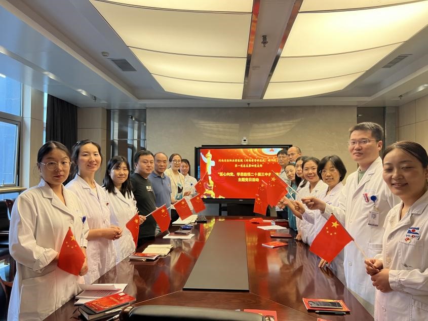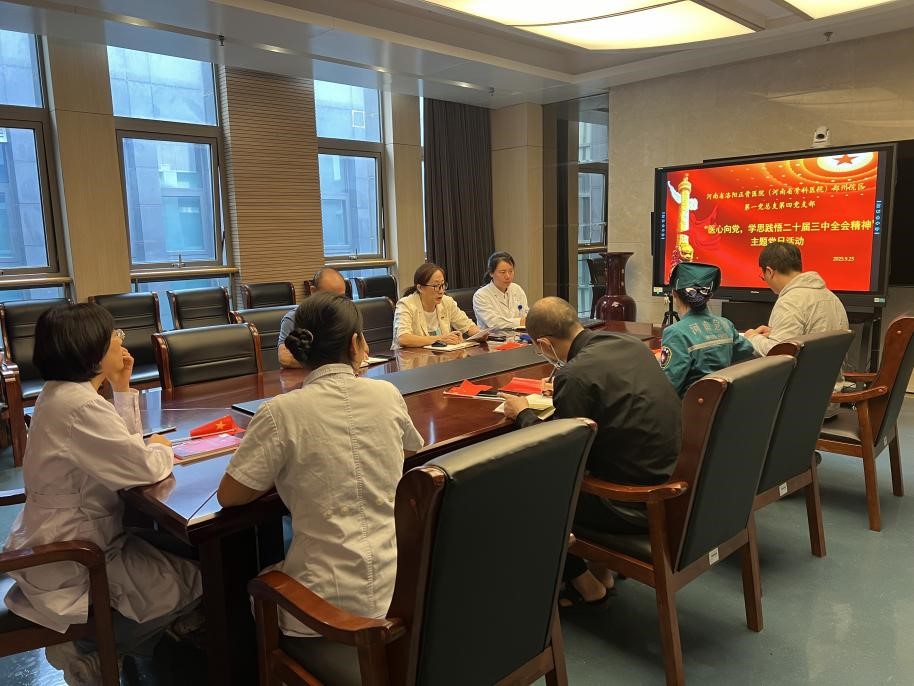 9月25日,郑州院区第一党总支第四党支部组织召开“医心向党,学思践悟二十届三中全会精神”主题党日活动,以实际行动向伟大祖国献礼,会议由支部书记林玲主持,支部全体党员参加。