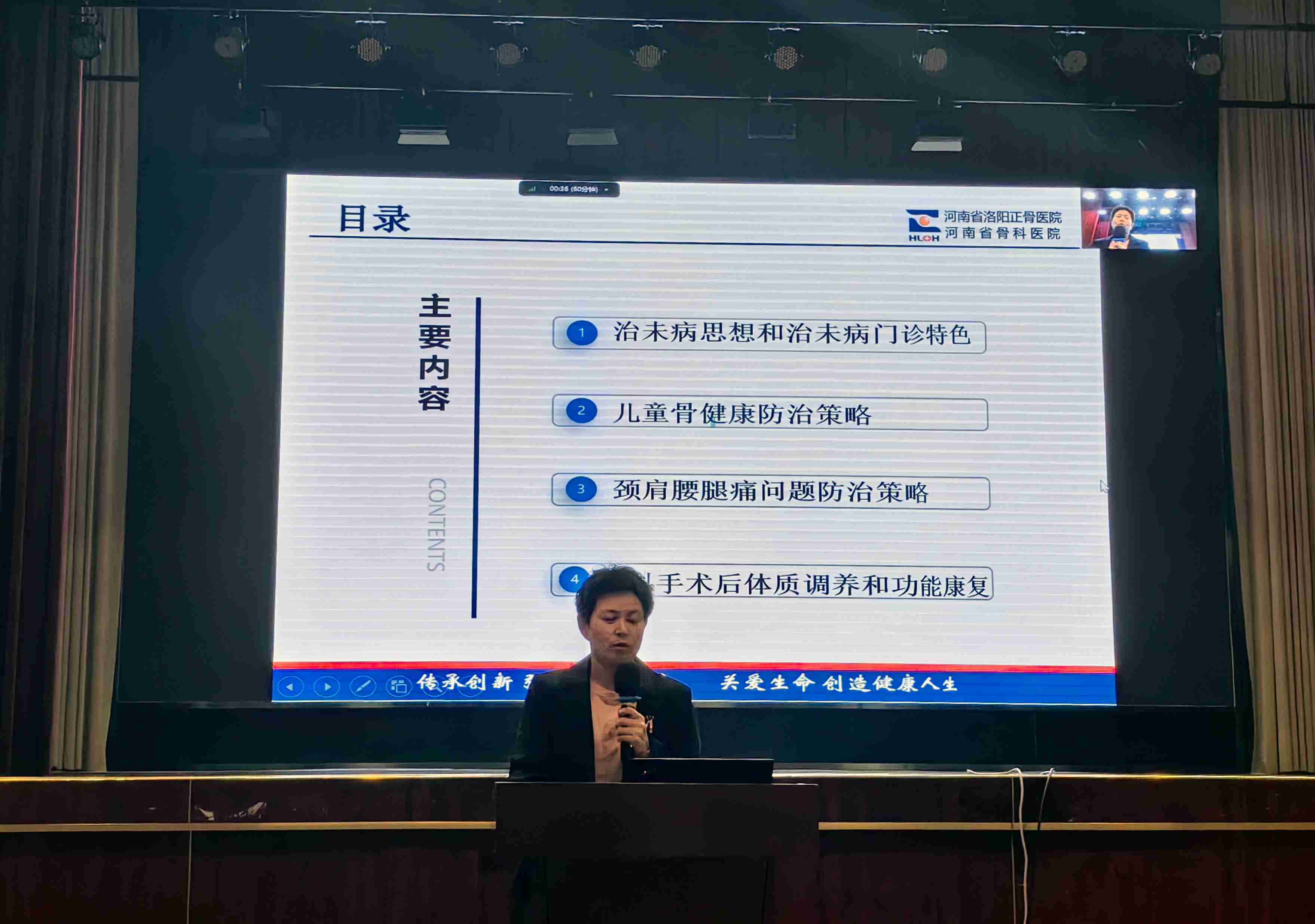 中医治未病思想的内涵外延包括:平素养生,防病于先;防微杜渐、欲病救萌;已病早治、防其传变;瘥后调摄、防其复发。段丽娟向大家介绍了我院治未病门诊开展的各项工作及常用中医干预技术,为大家分享了治未病思想指导下的儿童骨健康问题防治策略、颈肩腰腿痛问题防治策略与骨科手术后体质调养和功能康复策略。