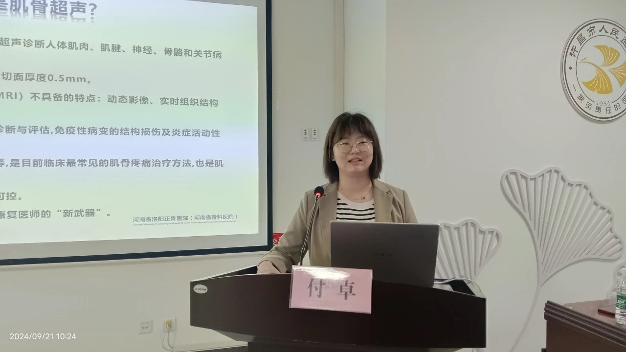 9月21日,付卓副主任受邀参加了许昌市医师协会超声专业专委会第五届年会并做了《肌骨疾病的超声介入治疗》专题讲座。付主任就肌骨系统介入治疗进行了深入的讲解,与参会的医师们分享了我院在该领域的先进技术和临床成果,得到了大家高度赞誉。