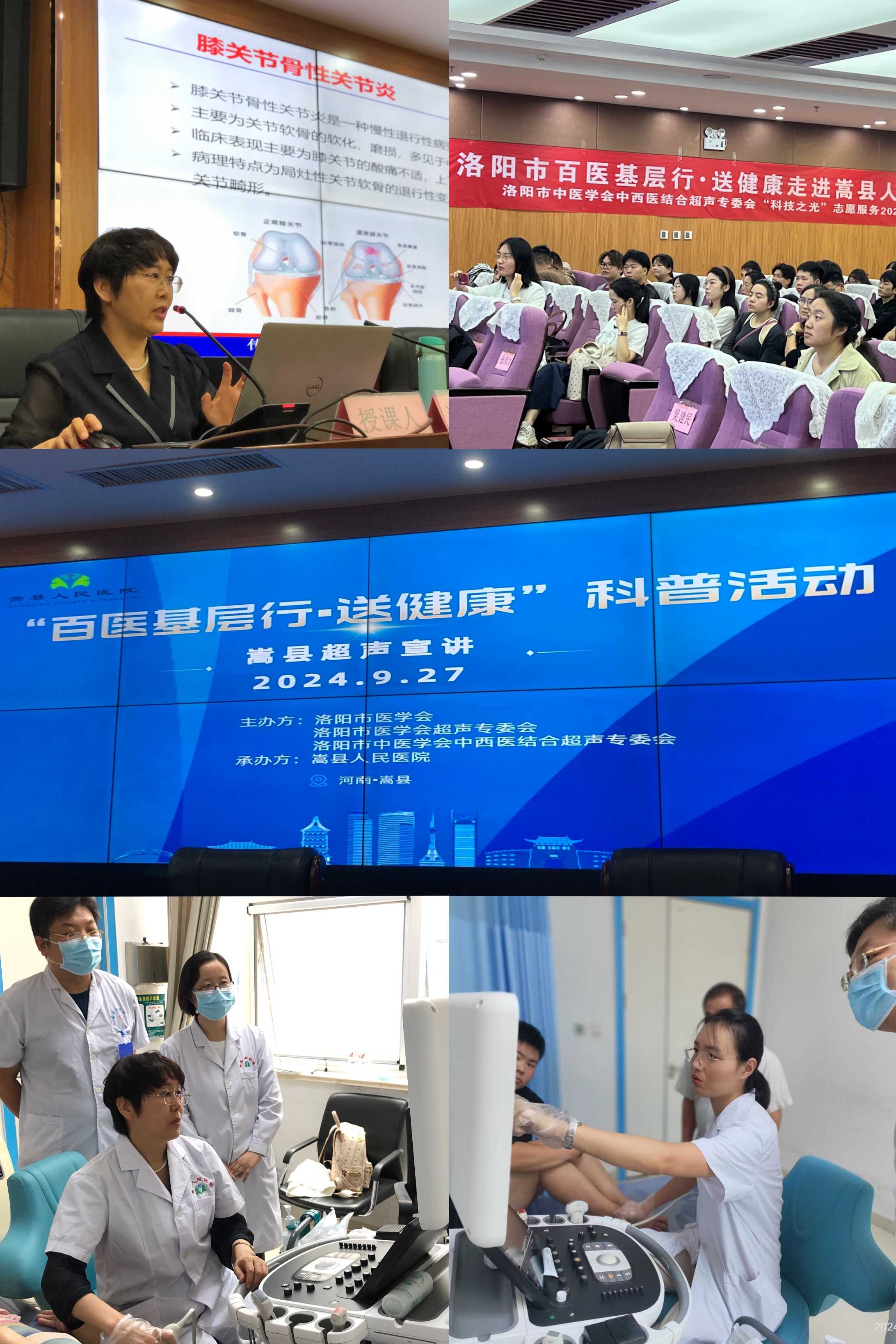 9月27日,功能检查中心主任、洛阳市中医学会中西医结合超声专委会主任委员沈素红携团队陈超医师赴嵩县人民医院参加洛阳市医学会、洛阳市医学会超声专委会、洛阳市中医学会中西医结合超声专委会主办的“百医基层行?送健康”科普讲座及义诊活动。沈素红主任就严重影响基层百姓健康的常见病、高发病膝关节骨性关节炎做了“膝关节骨性关节炎的超声诊断及介入治疗”专题讲座,为大家科普了肌骨超声的特点及临床应用优势,讲述了肌骨超声不仅可以无创、便捷、高效地诊断膝关节骨性关节炎,并且可以对该病进行超声引导下的介入治疗。讲座受到了广大基层医师的热烈反响及对肌骨超声的广泛关注和极大兴趣。义诊环节,沈素红主任、陈超医师为6位疑难病人进行了耐心细致的检查,并对每一病变的超声表现进行了详细的讲解,与当地医师进行了深入交流,她们严谨的态度和娴熟的专业技能受到了基层医师的一致好评。