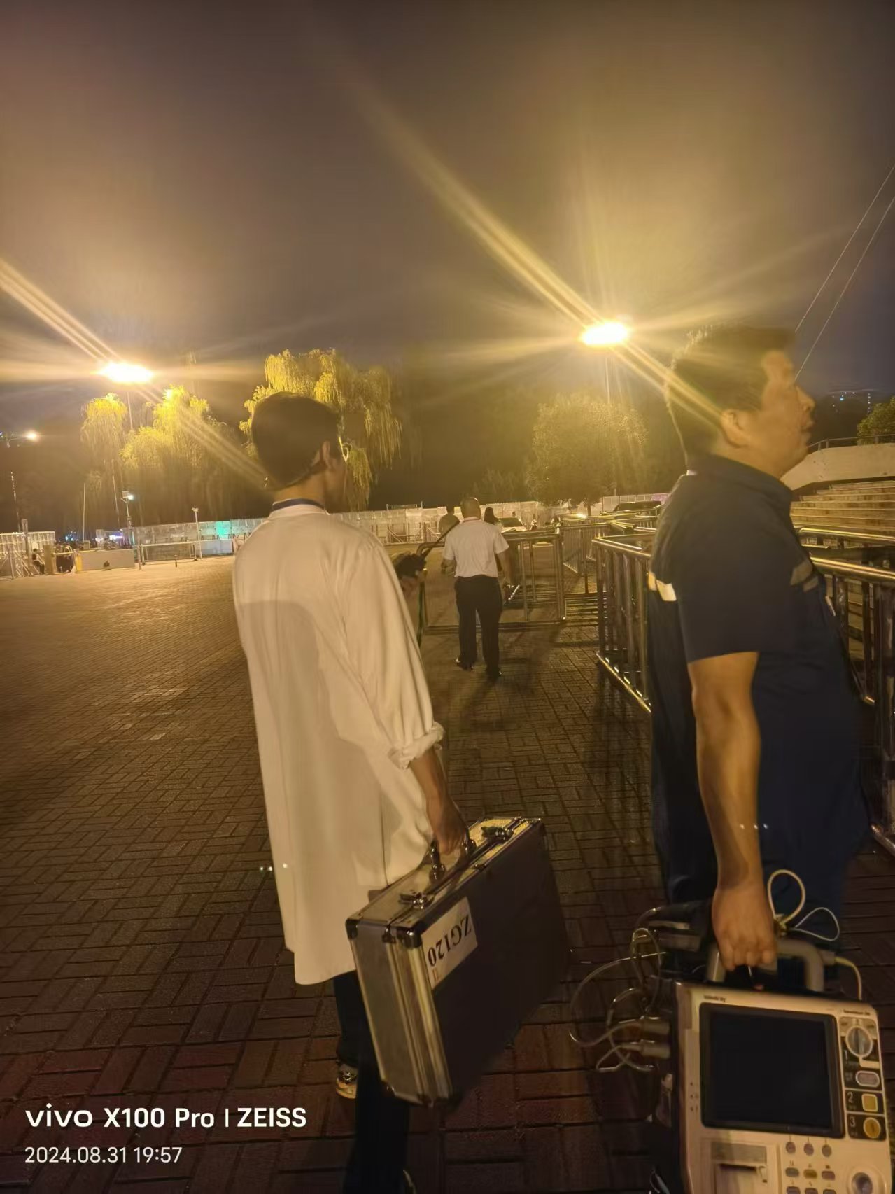 演唱会当天,我院急诊科、外科医生张恒、护士蔺霞飞、司机张松峰提前到达现场,对医疗点进行最后的检查和准备。他们以饱满的热情和严谨的态度,坚守在自己的岗位上,为观众提供及时、有效的医疗服务。在演唱会过程中,医护人员时刻关注着观众的身体状况,一旦发现有观众身体不适,立即上前进行诊治。无论是因天气炎热而中暑的观众,还是因情绪激动而突发身体不适的歌迷,医护人员都迅速做出反应,给予专业的治疗和护理。