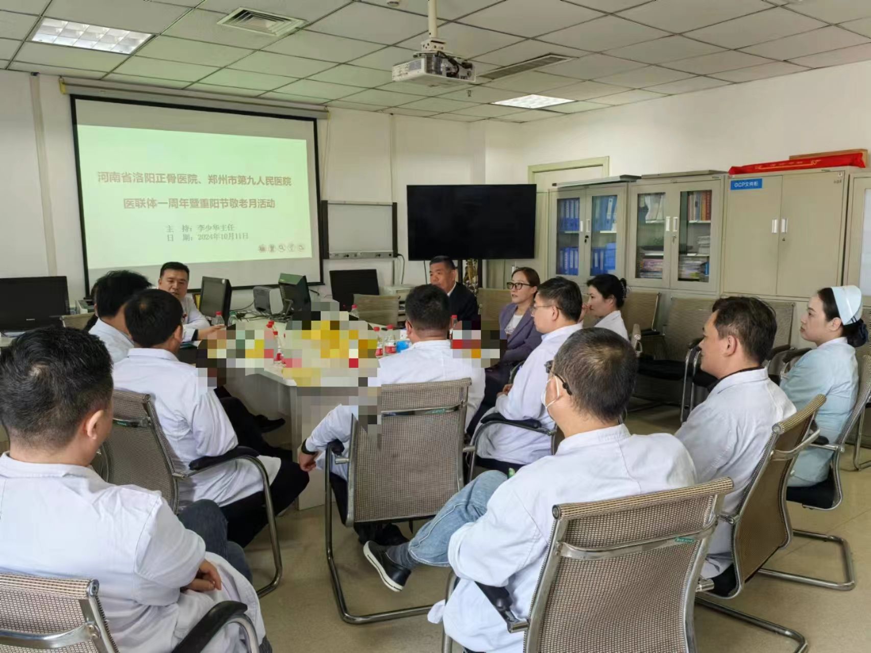 秋风送爽,丹桂飘香,又是一年重阳至,10月11日上午,我院郑州院区首席专家朱卉敏教授带队,由郑州院区社会工作部主任林玲、骨盆髋臼外科主任医师易先达、脊柱微创外二科副主任医师张昌盛、人工关节翻修科副主任医师李帅垒、骨关节病一科副主任医师岳松涛、功能检查科副主任乔雅馨、颈肩腰腿痛一科主诊医师李金辉共同组成的专家志愿服务团队,来到我院医联体单位郑州市第九人民医院,联合九院共同举办“九九重阳节 浓浓敬老情”义诊、查房和学术交流活动。