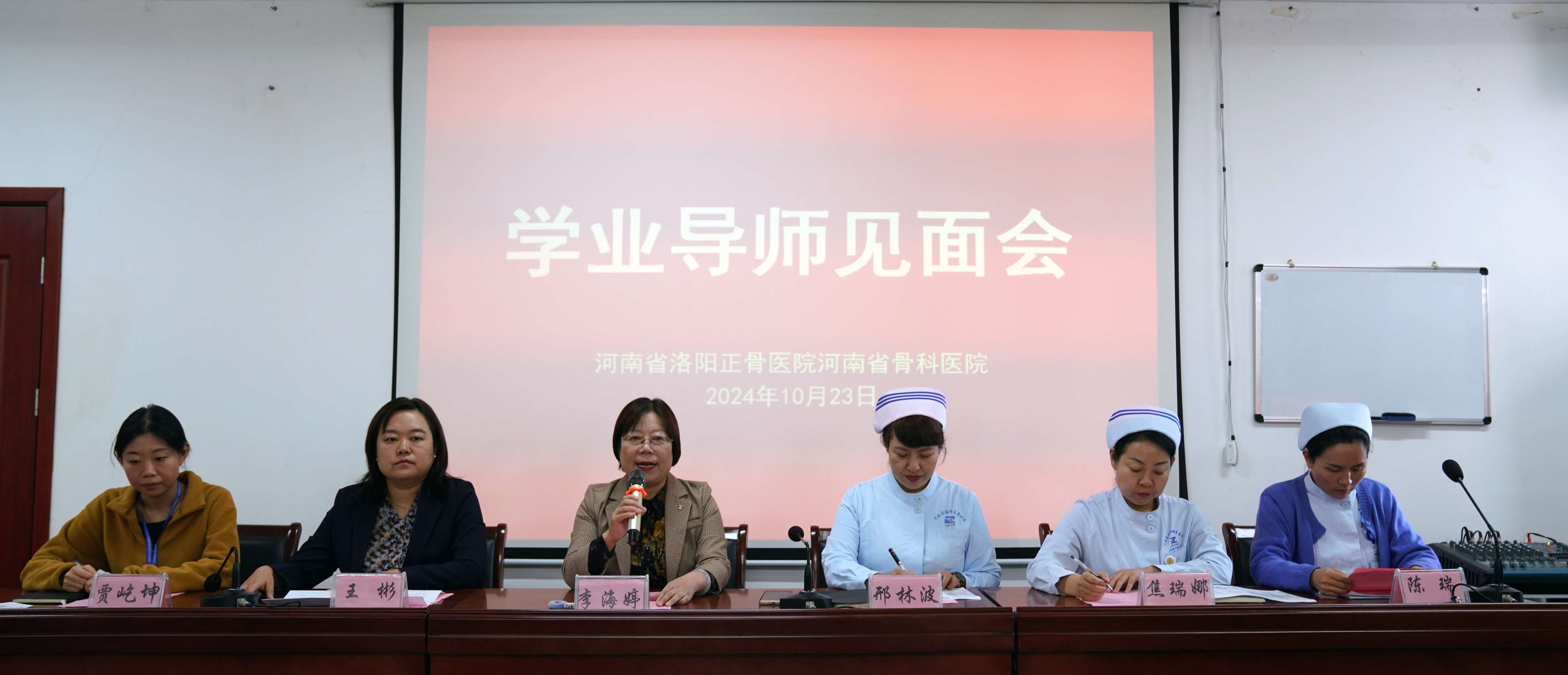李海婷主任致开场辞,她首先对远道而来的学生表示热烈欢迎,并简要介绍了医院的教育教学和基本情况。她强调,学业导师制的实施,旨在为学生提供更加精准、个性化的学业指导,助力他们未来的专业发展和职业规划。