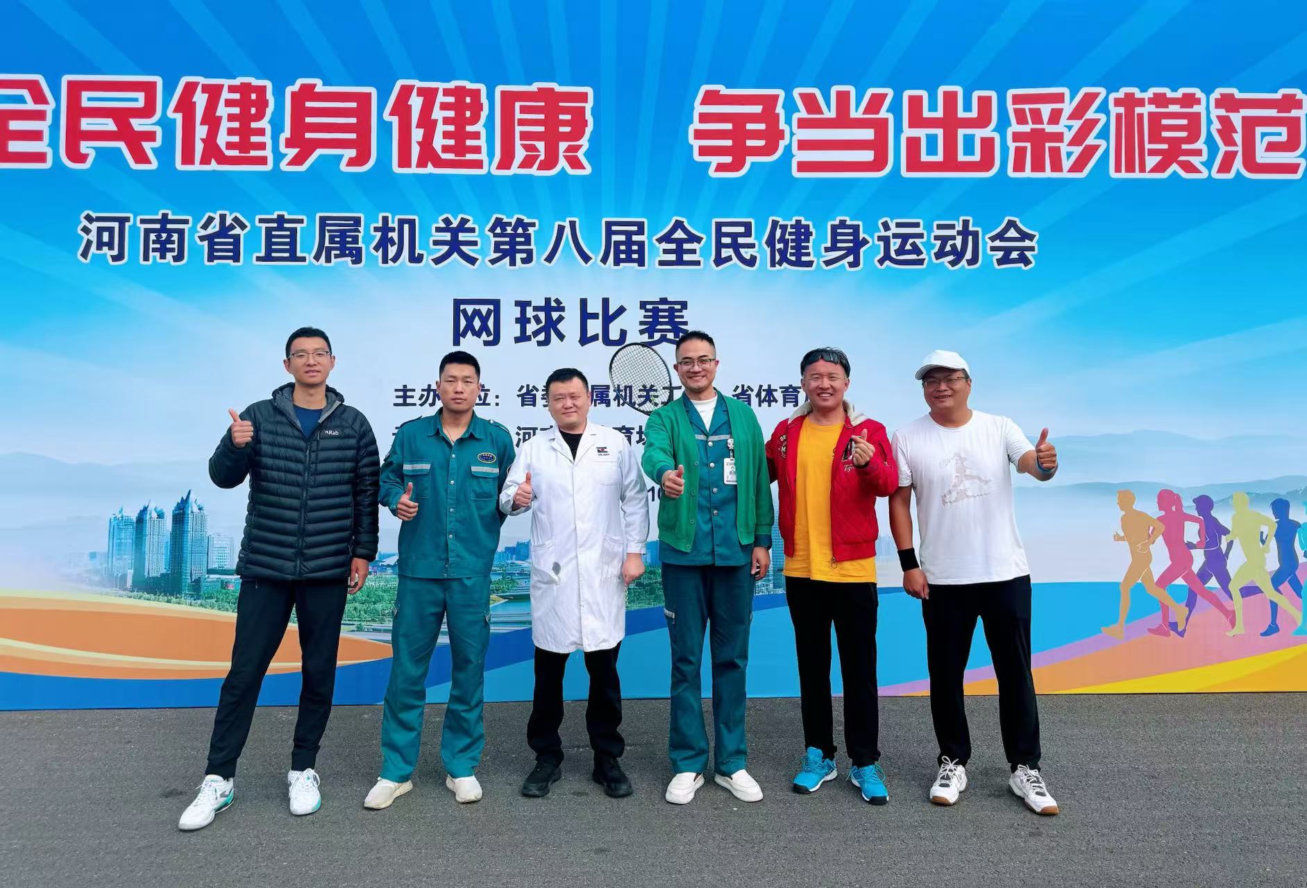 乘着秋风的翅膀,载着满满的喜悦,由河南省委直属机关工委、河南省体育局主办,河南省体育场馆中心承办的“全民健身健康,争当出彩模范”河南省直机关第八届全民健身运动会网球比赛于10月23日早上8点30分拉开帷幕,从10月23日至25日为期三天的比赛由38家单位,165人参加,我院按照河南省卫生健康委员会安排,郑州院区急诊科团队为此次赛事全程保驾护航。