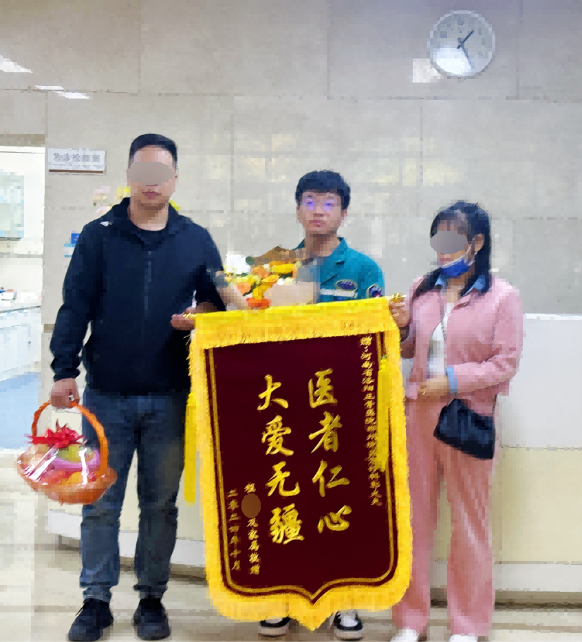 为了表达对郭帆的感激之情,蛋糕店老板家属特意制作了这面锦旗,在赠送锦旗的现场,家属激动地说:“谢谢郭医生救了我爱人的命,你是我们生命中的贵人!这面锦旗虽然微不足道,但它是我们全家人对你深深的敬意和感激!”