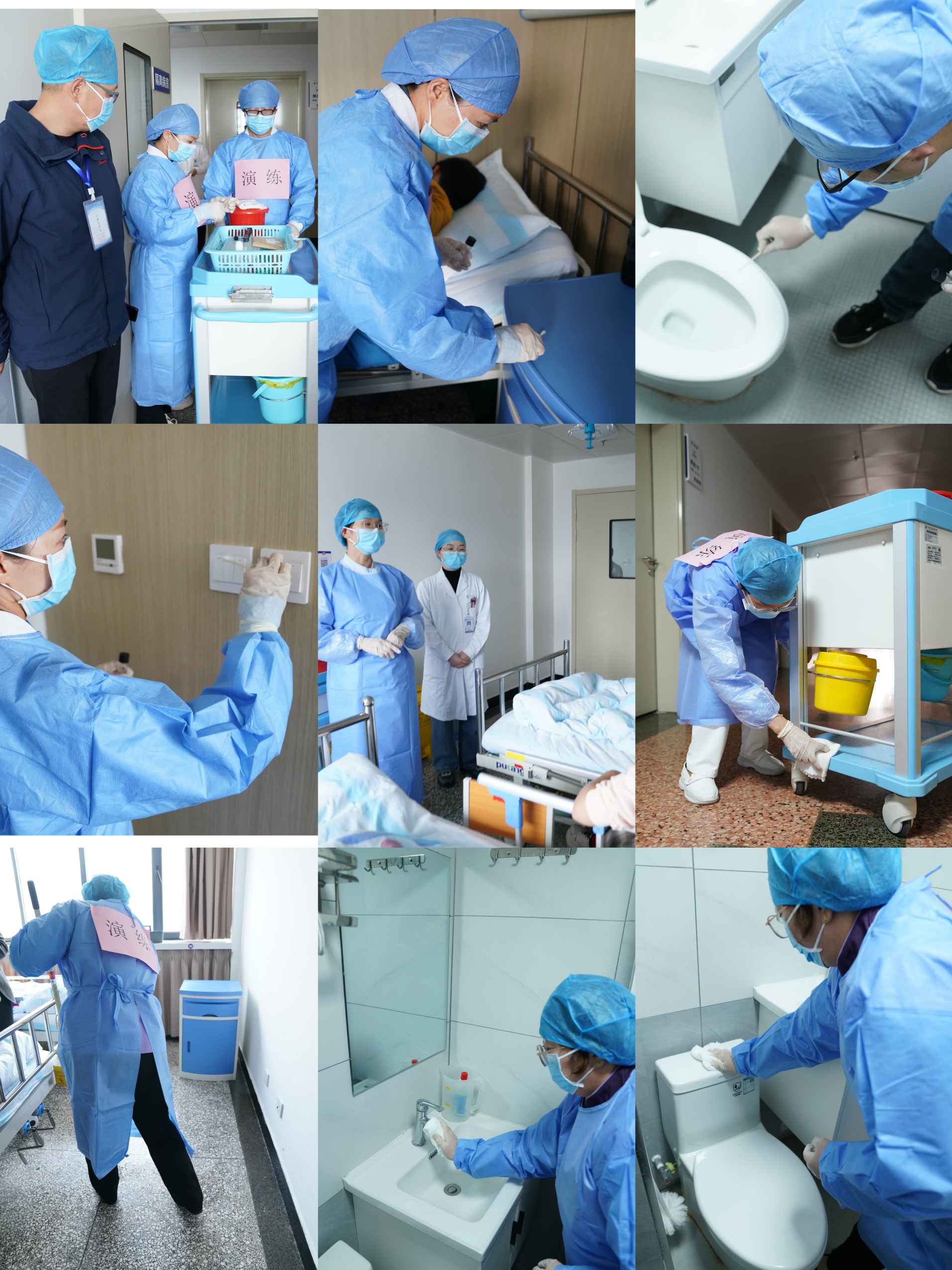 在演练过程中各部门各司其职、通力配合。感控科和疾控监督员统筹全局、明确专职人员分工,在现场指导隔离、调查病例、配合宣教、辅助环境物表采样及消毒等,同时调查其他科室有无相似症状的病人,明确感染范围;医学检验中心对患者呕吐物或大便及高频接触环境进行标本采样、检测;医务部组织专家会诊,落实诊治方案;护理部协助护理人员调配,保证正常护理治疗,监督消毒隔离措施落实;药学部保障治疗用药、抢救药品、消毒药械的及时供应;医学装备部保障消毒物品、防护用品供应;安全保卫部维持现场秩序,确保安全;宣传部控制舆论,防止舆情发生;龙祥物业管理公司协助临床科室全面消毒,保障医疗废物的收集转运。