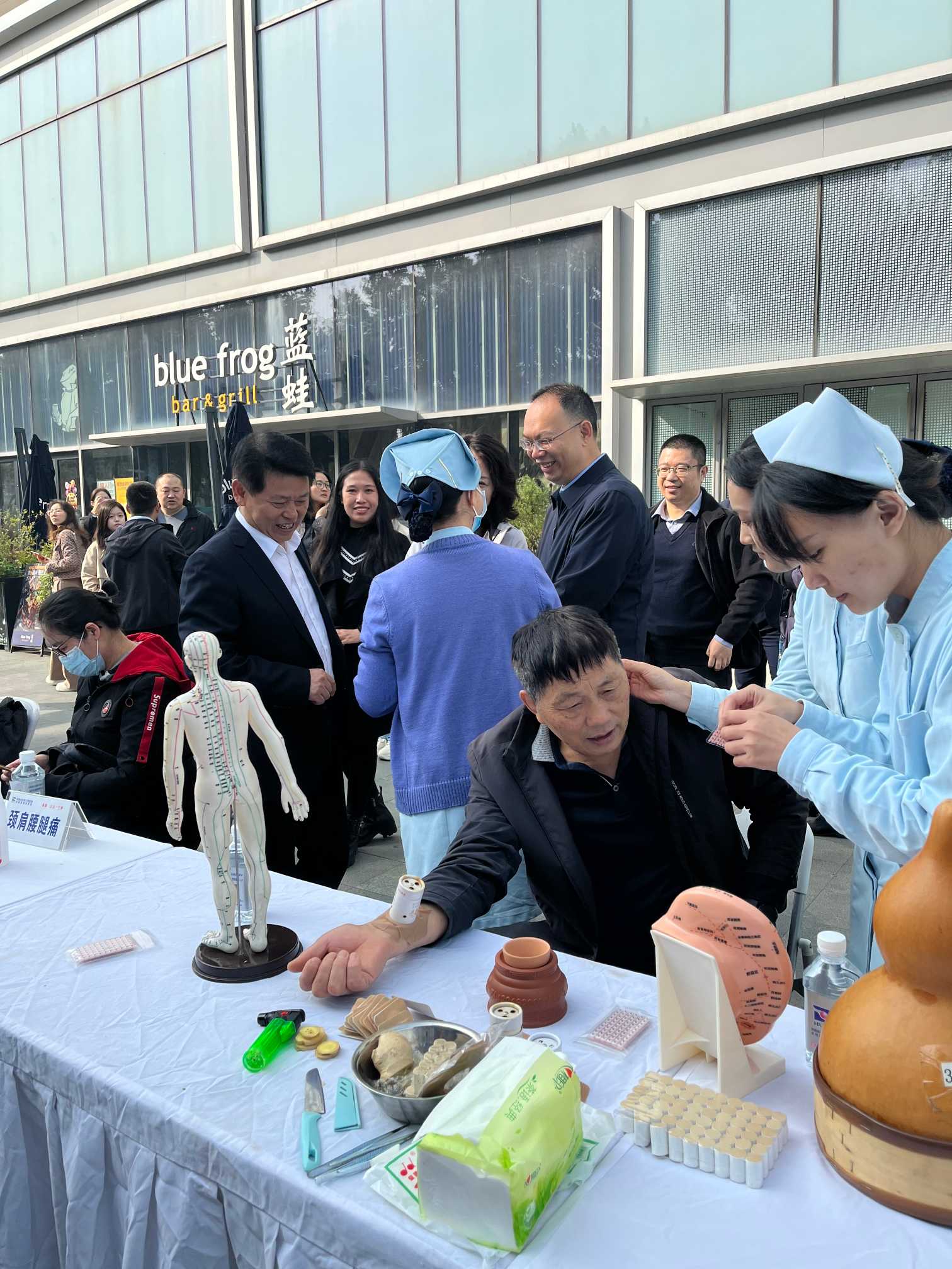 本次公益活动我院郑州院区选派医疗,护理、药学,健康科普,健身功法等40余位专家参加活动,进一步弘扬中医传统文化,丰富居民养生知识,倡导科学、健康的生活方式。活动现场,我院专家团队提供中医把脉问诊、针灸理疗、穴位贴敷、健康科普、免费血压测量,中药辨识活动、中药知识讲解,药膳和药茶品尝等活动。