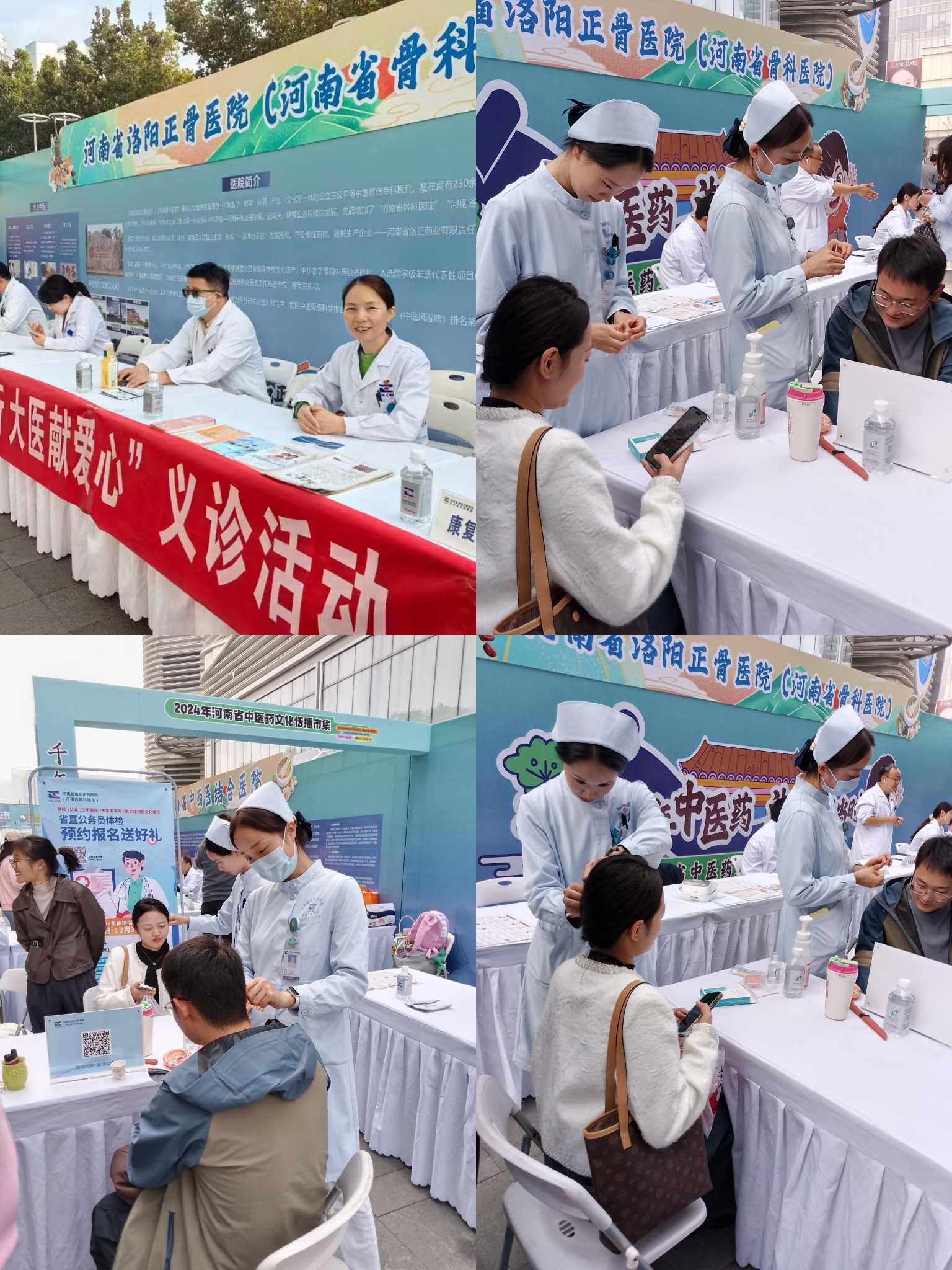 2024年10月26—27日“千年中医药 潮起正当时——2024年河南省中医药文化集市”活动我院应邀参加。本次活动由河南省卫生健康委、河南省中医药管理局委托,河南省健康中原服务保障中心主办,河南卫视承办。旨在加强中医药文化的传承与创新,普及健康知识和中医药服务,提高广大群众对中医药的认知度和信任度。