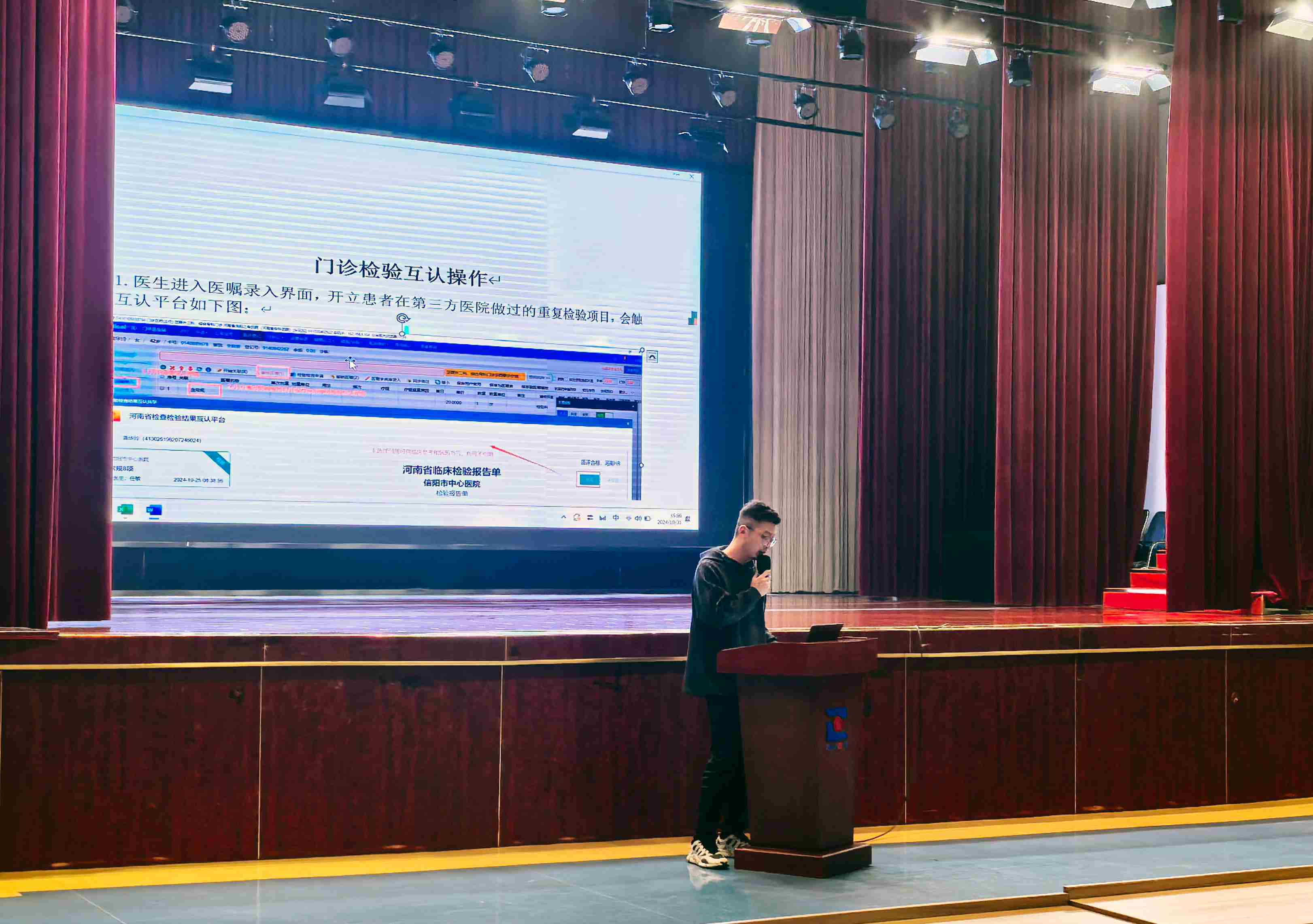 信息中心主任刘贤斐详细讲解了检验检查结果互认操作系统的使用。