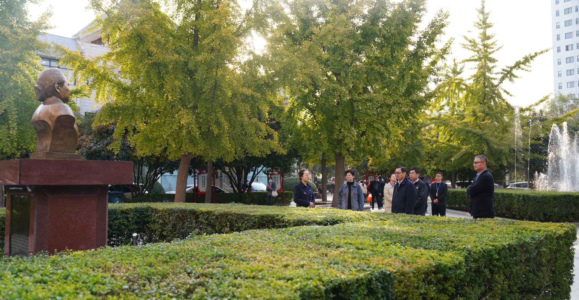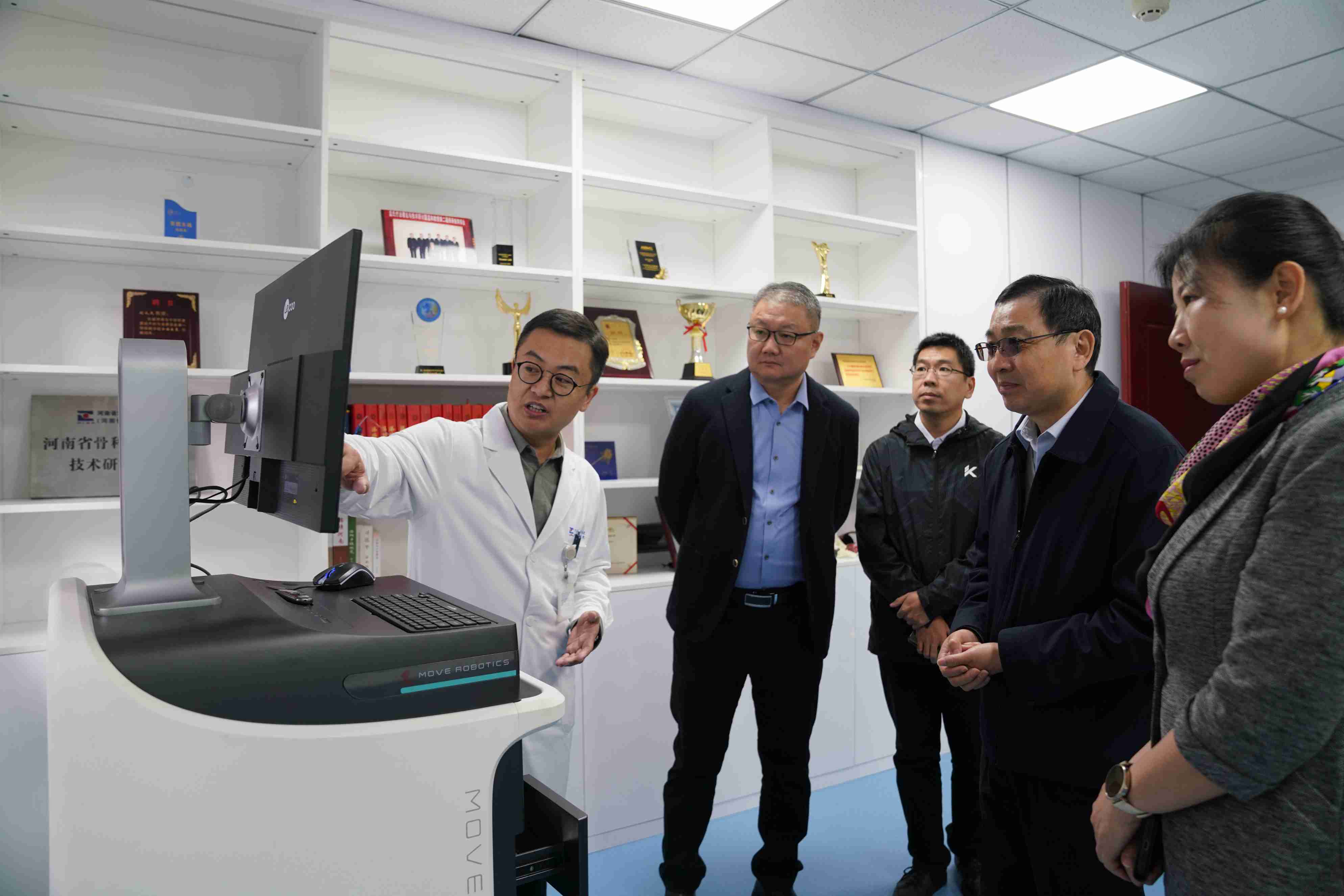 李宗友主任一行参观了东花坛院区一号楼前广场高云峰先生雕塑与二号楼院史馆,了解我院悠久历史背景与发展规划,并深入手法正骨诊疗中心、颈肩腰腿痛(推拿)诊疗中心与数字骨科中心,感受我院平乐郭氏正骨传统诊疗技术及现代数字技术赋能下传统诊疗技术的发展。