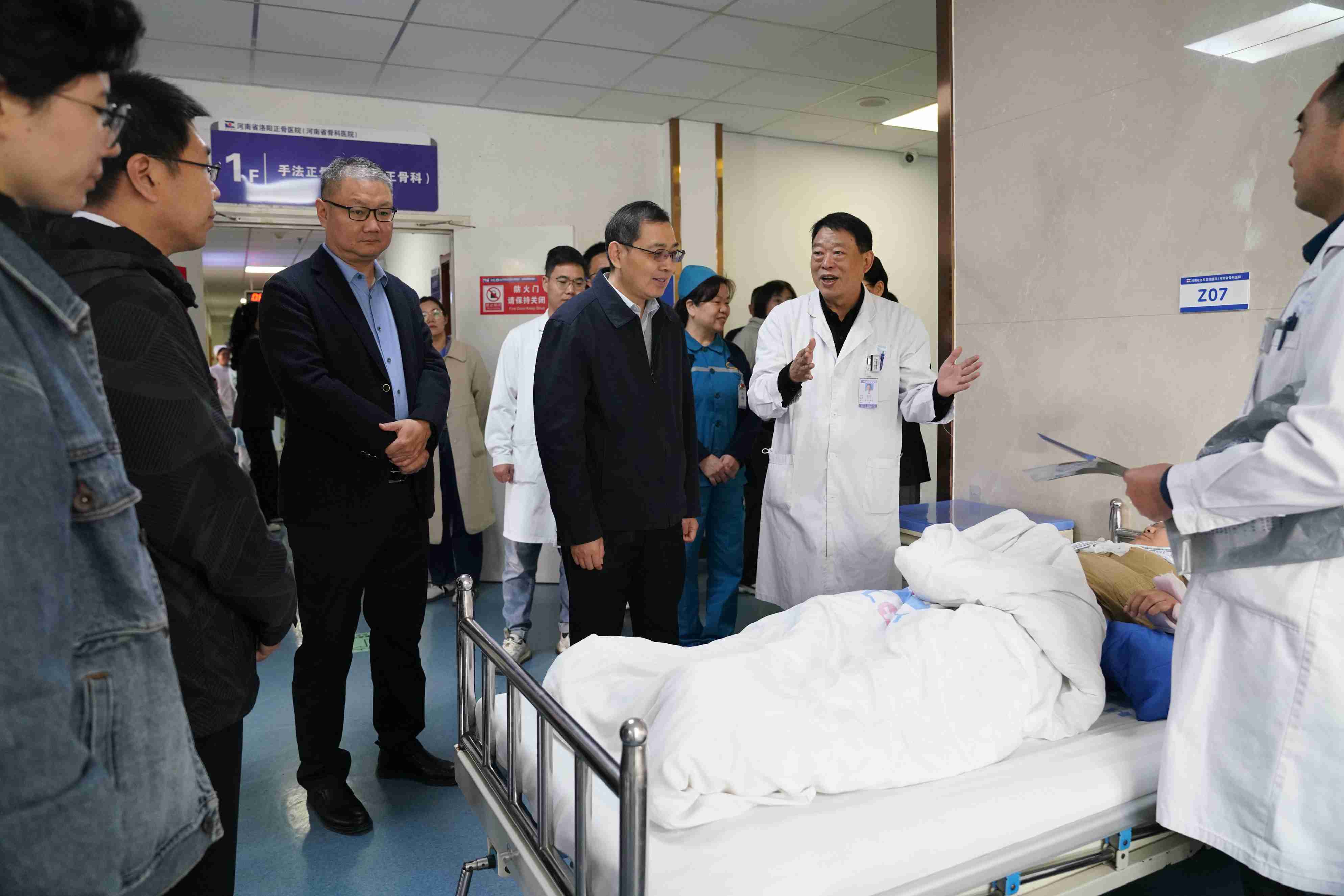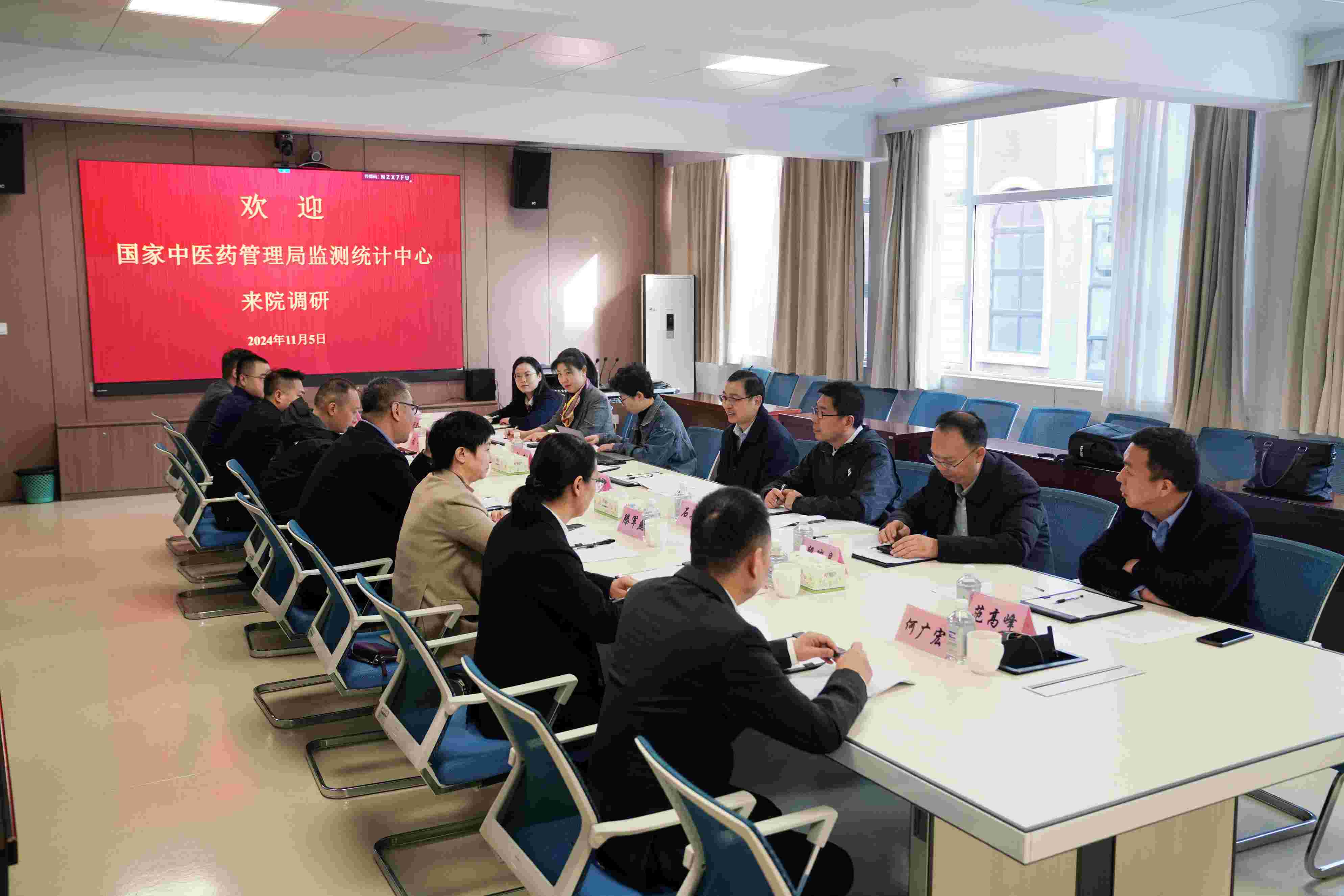 2024年11月5日,国家中医药管理局监测统计中心主任李宗友,国家中医药管理局监测统计中心医疗服务评价处负责人石英杰,国家中医药管理局监测统计中心政策研究处干部刘爽一行到我院开展中医医院科室命名及中医医疗服务质量监测评估相关工作调研。河南省卫生健康委员会中医药发展处处长段瑞昌,河南省卫生健康委员会中医医政处处长钮正春,河南省卫生健康委中医医政处干事舒亚玲,洛阳市卫生健康委员会党组成员、副主任范高峰及我院党委副书记、院长吴晓龙,副院长赵明宇、滕军燕陪同调研。