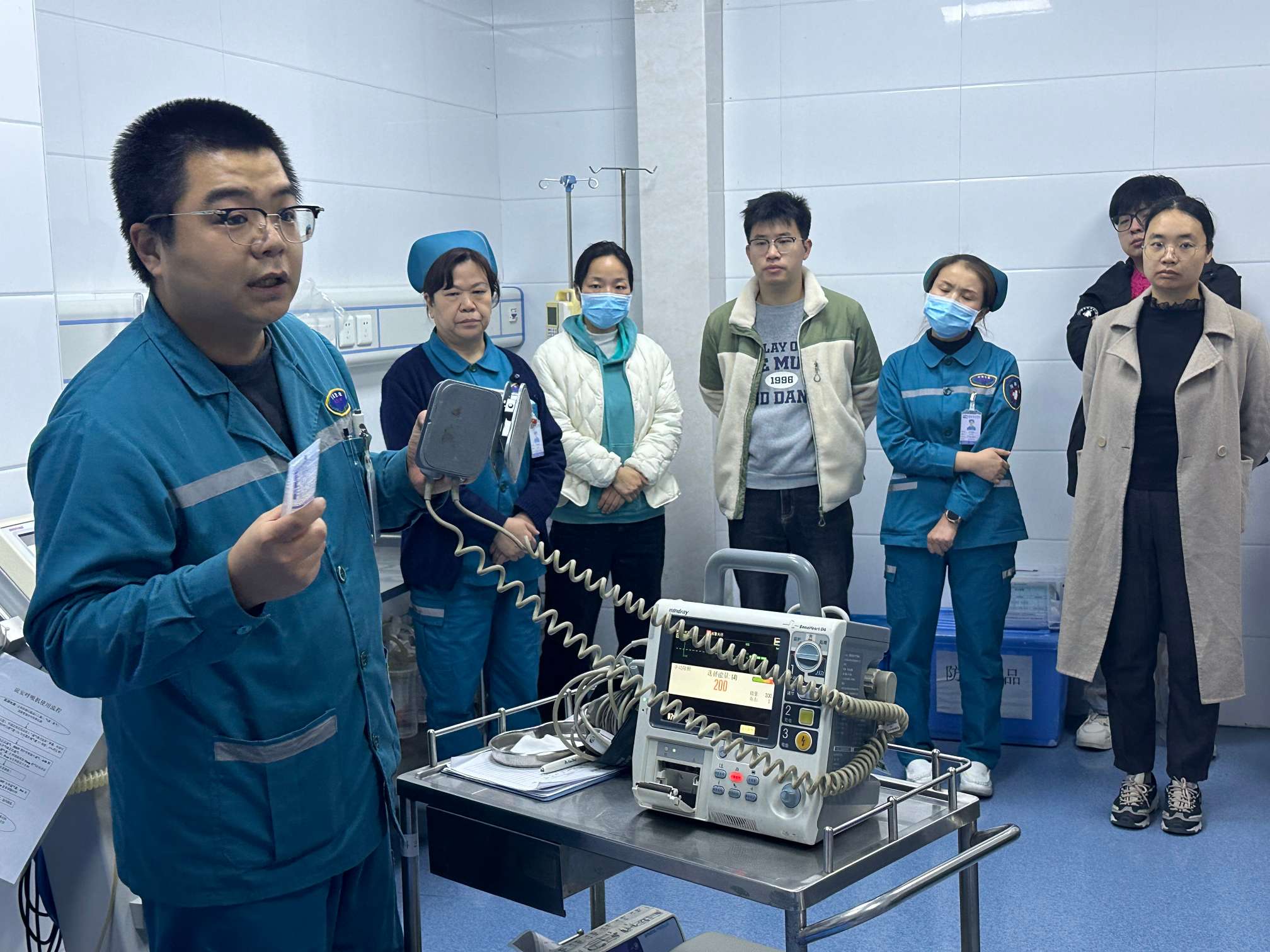培训内容涵盖了心肺复苏术(CPR)、除颤仪的使用、呼吸机的应用等核心急救技术。急诊护士惠明在培训中详细讲解了心肺复苏术的最新操作规范,强调了按压频率、深度及连贯性的重要性,并通过模拟人进行了现场示范。本次培训还重点对常用的急救仪器进行了全面讲解与实操演练,对除颤仪、呼吸机、心电监护仪、腹部提压心肺复苏仪等仪器的工作原理、参数设置、日常维护及常见故障排除方法一一进行了介绍。在实操环节,医护人员们纷纷上手操作仪器,模拟各种急救场景,以便在实际工作中能够迅速、准确地运用这些设备。