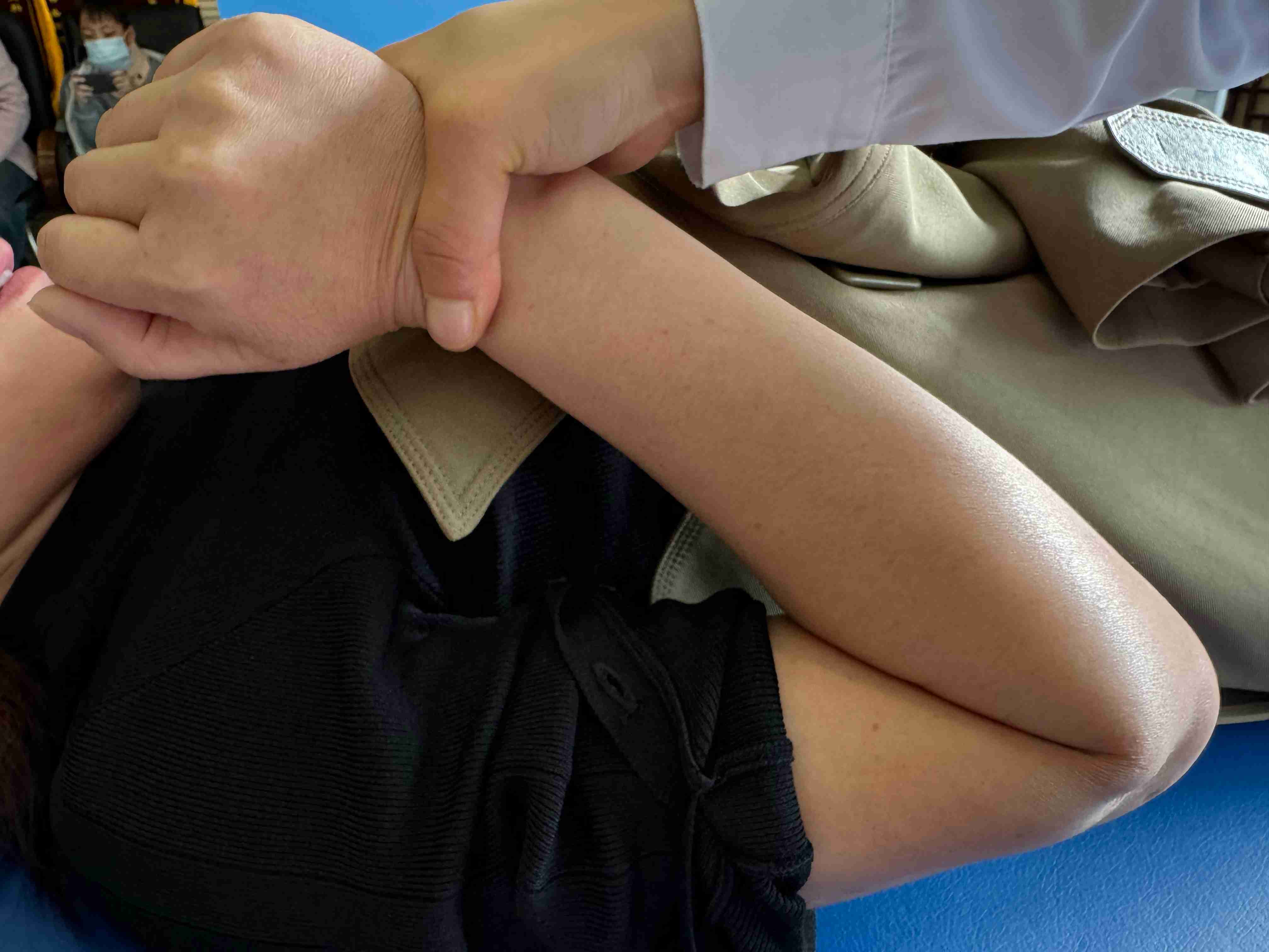 去年10月,付女士因肱骨开放性骨折进行手术治疗,因受伤较重,使用外固定架固定时间较长,今年5月拆除外固定架后,右肘关节僵硬,屈伸活动受限,严重影响正常生活。付女士尝试自行在家康复锻炼,但效果不佳。