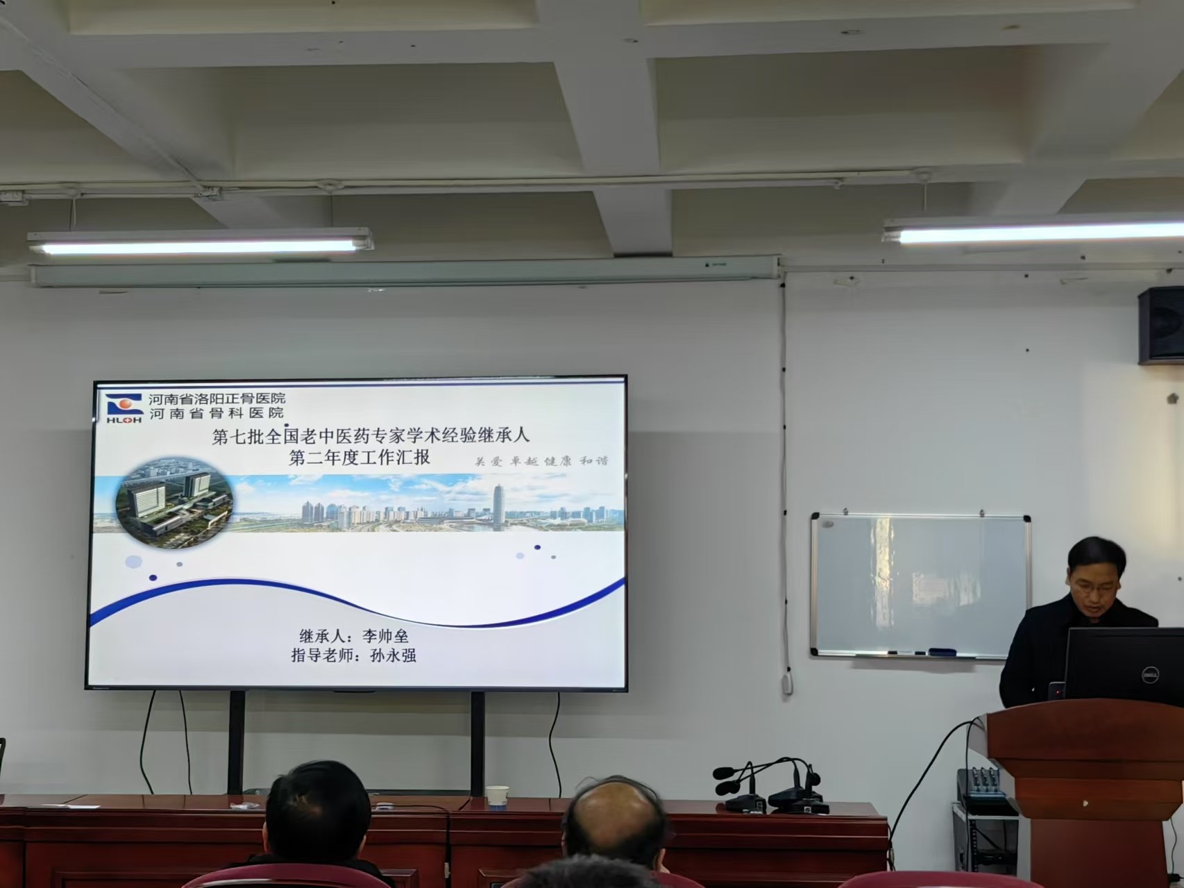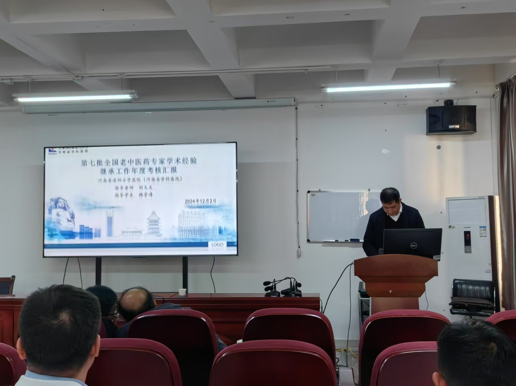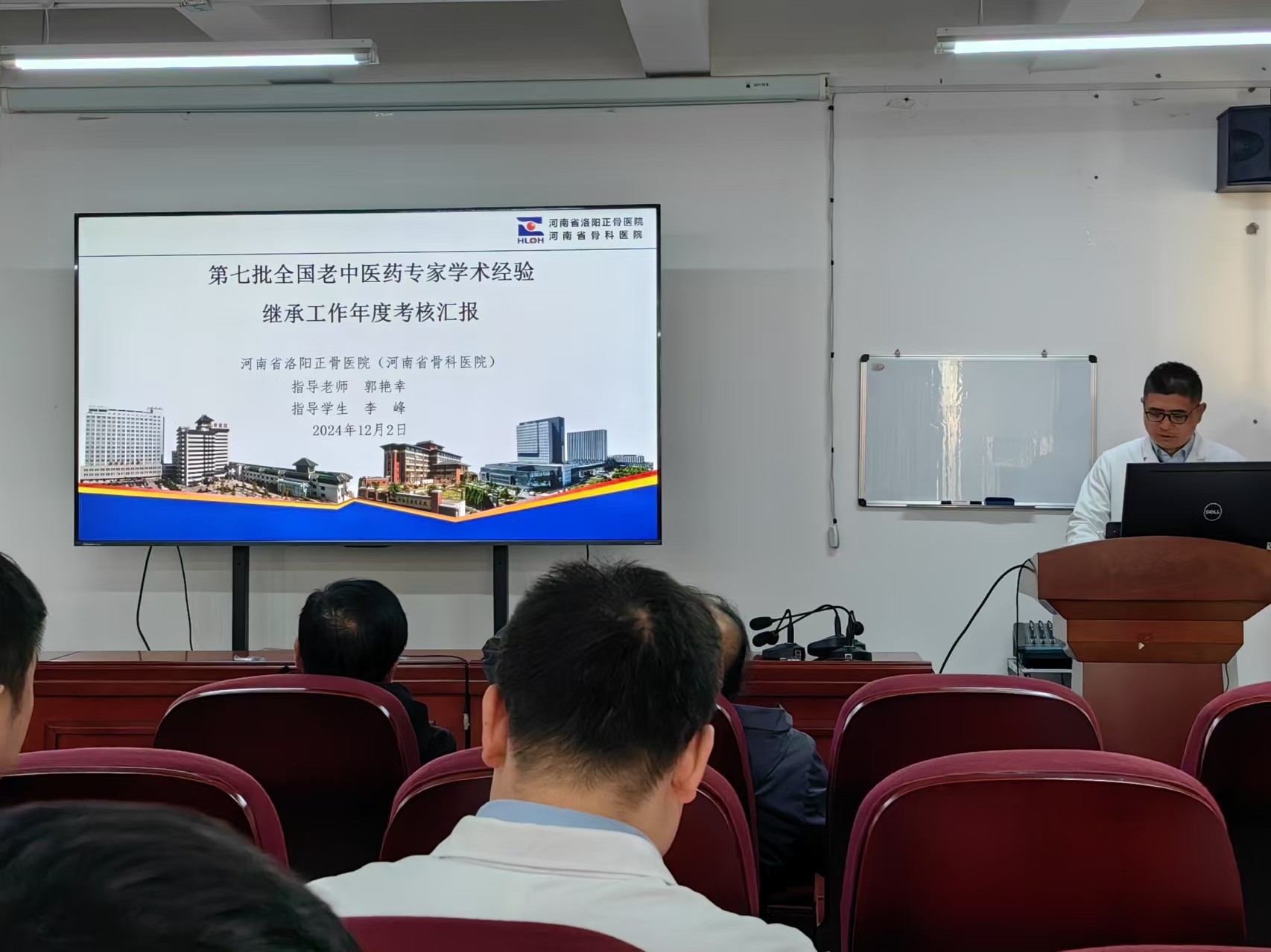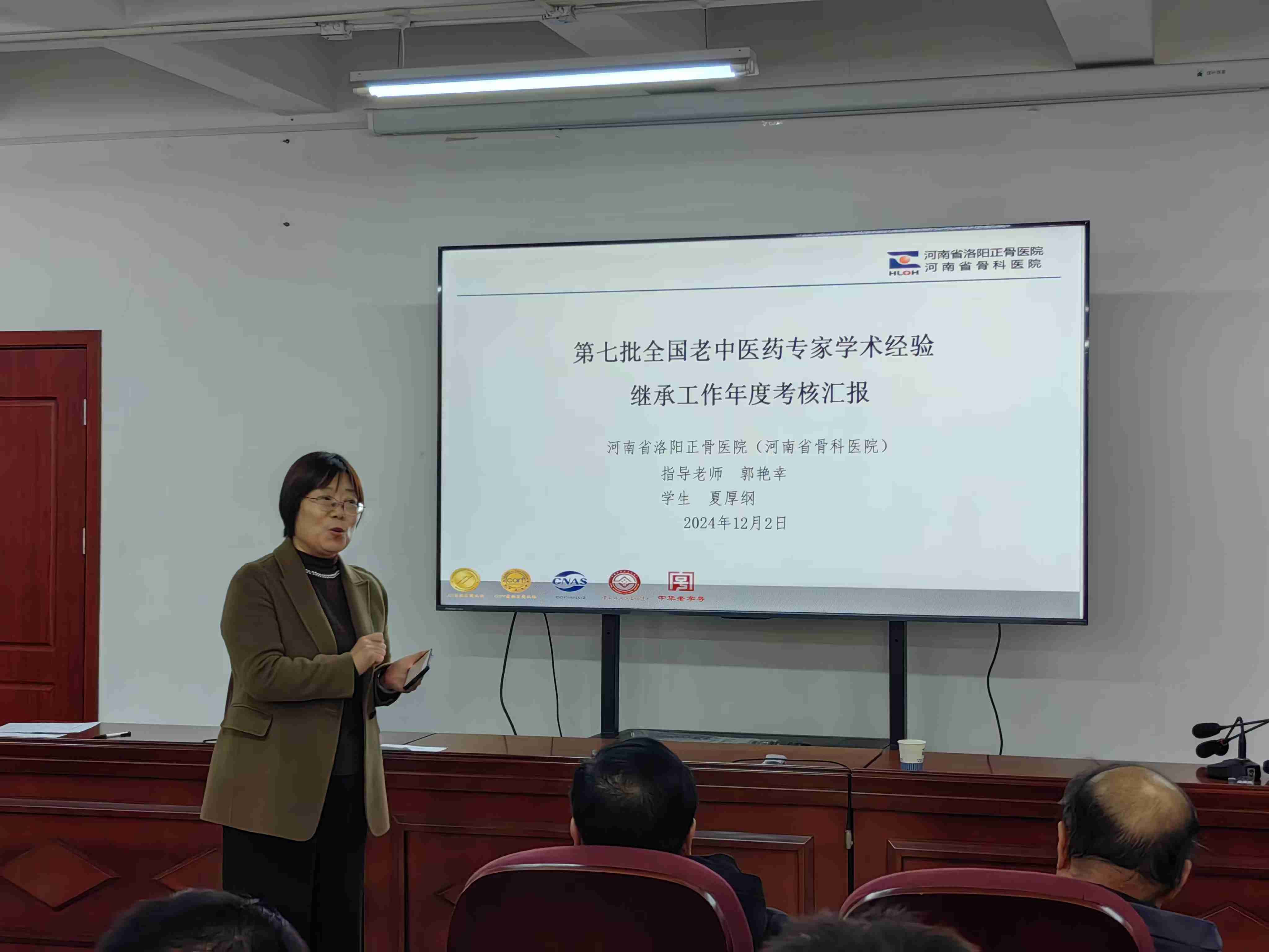根据《关于组织开展第七批全国老中医药专家学术经验继承工作年度考核的通知》及《国家中医药管理局办公室关于印发〈第七批全国老中医药专家学术经验继承工作实施方案〉》(国中医药办人教发【2021】272号)要求,我院于2024年12月2日下午在东花坛院区教学楼举行第七批全国老中医药专家学术经验继承工作平时考核。参与本次平时考核的共六名学术继承人,分别是:李峰、夏厚纲、贾宇东、韩崇涛(河南中医药大学第三附属医院)、李帅垒、张鹏(河南大学淮河医院),他们两人一组,分别师承郭艳幸、刘又文、孙永强三位专家教授。