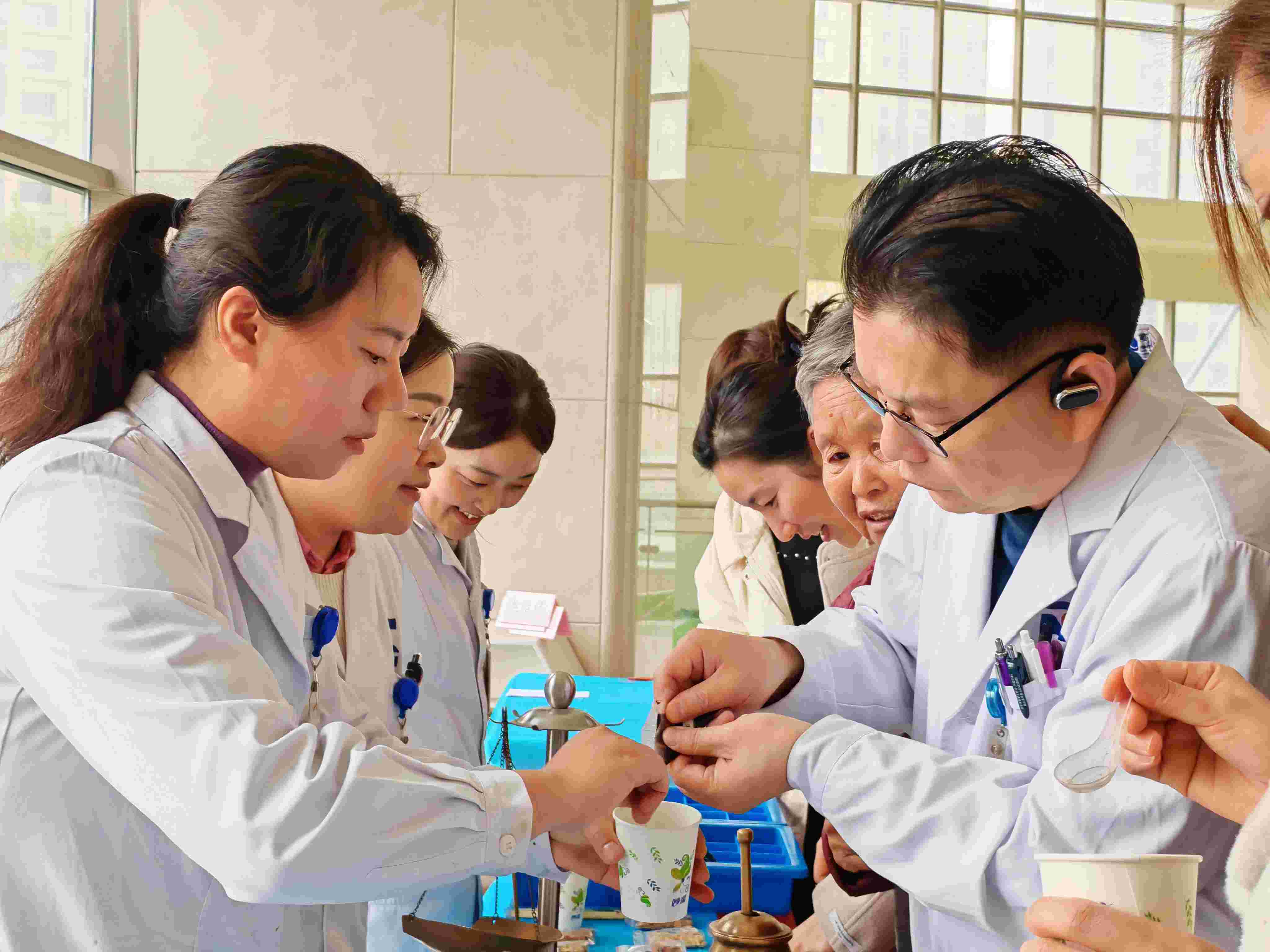 活动现场,氛围热烈而有序。茶饮体验区弥漫着淡淡的茶香,那是我们精心调配的养生茶饮,每一口都蕴含着对健康的祝福。膏方体验区则人头攒动,参与者们不仅可以免费品尝到中药房精心熬制的膏方,还能深入了解膏方的制作、服用、保存以及功效等相关知识。此外,中药展示区的琳琅满目,更是让市民朋友们对中医药文化有了更为直观的认识。医院副院长滕军燕教授与市民朋友们进行了亲切交流,耐心解答了市民们关于膏方养生的疑问,分享了自己对于中医养生的独到见解。